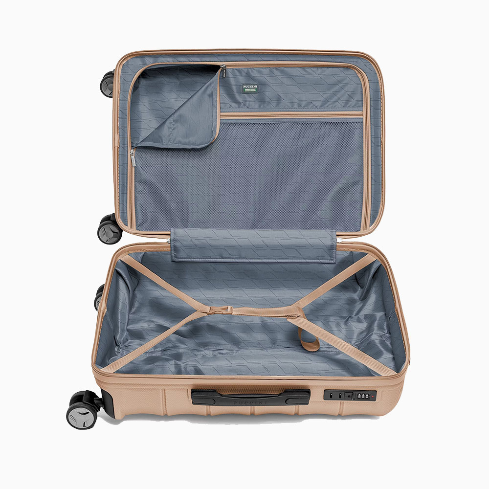 Cairo Collection dostępna jest w trzech rozmiarach – dużym, średnim i kabinowym – dzięki czemu można dopasować walizkę do każdej podróży. Bogata paleta kolorów obejmuje zarówno klasyczne odcienie, jak i efektowne barwy rose gold oraz złotą, które przyciągają wzrok i pozwalają wyróżnić się na lotnisku.