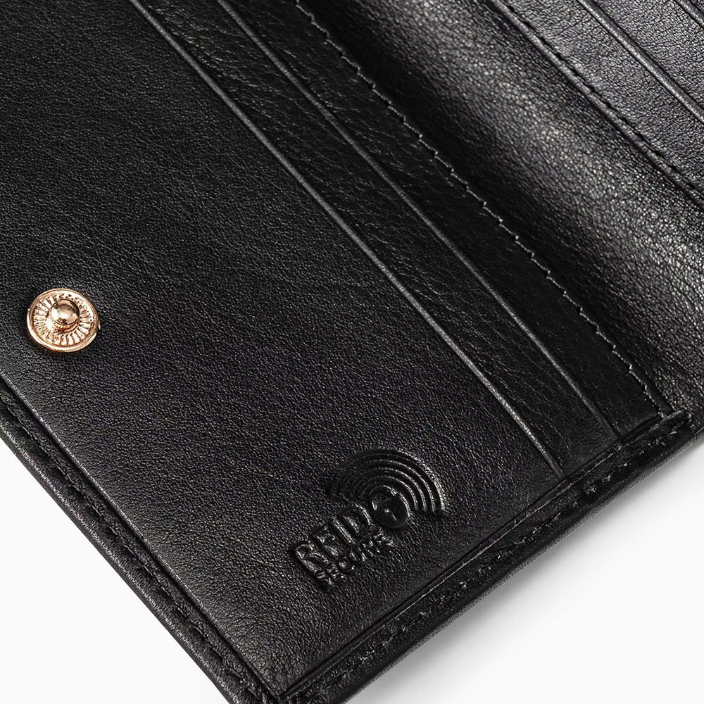 Dodatkowo, portfel wyposażono w system RFID, chroniący karty przed kradzieżą danych zbliżeniowych.