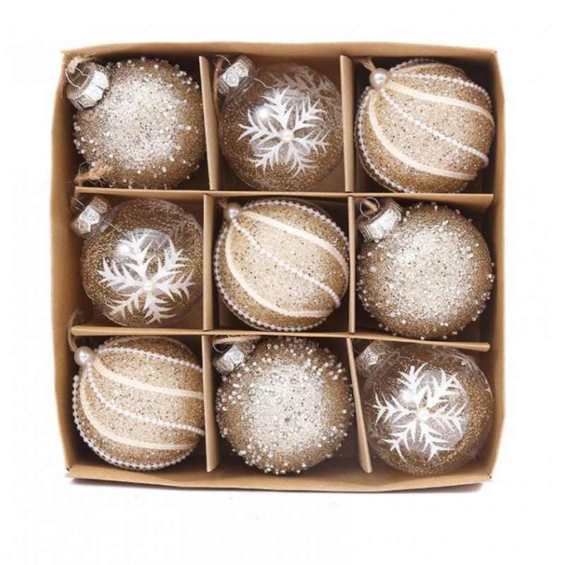 Komplet 9 sztuk bombek na choinkę Dodaj swojemu wnętrzu odrobinę zimowej magii.