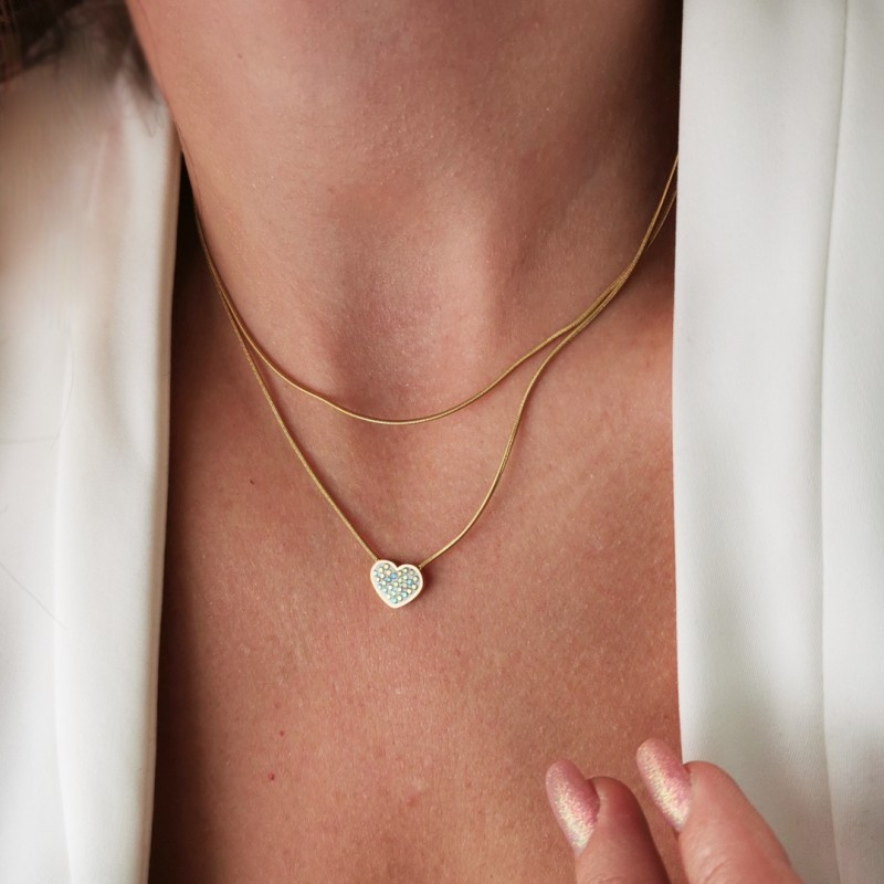 Kolor: - Jasny odcień złota Wymiary: - Długość krótszego łańcuszka: 39,5 cm - Długość dłuższego łańcuszka: 43,0 cm - Regulacja: 5,0 cm Biżuteria ze stali chirurgicznej
