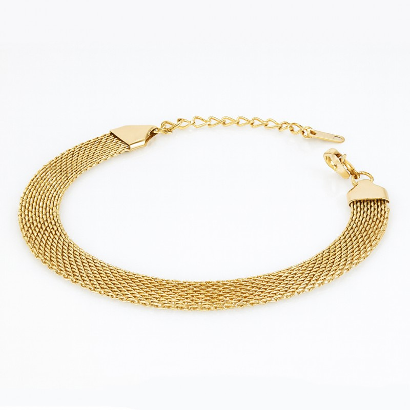 Modna bransoletka ze stali nierdzewnej platerowana 14 karatowym złotem Świetnie pasuje do eleganckich, jak również do codziennych stylizacji Elegancki dodatek na
