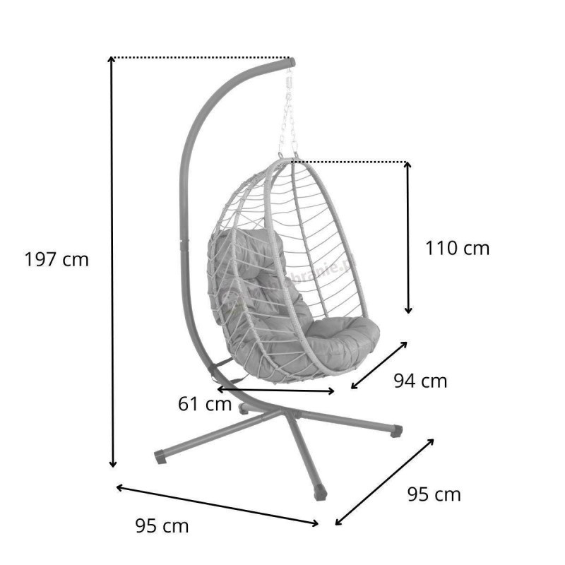 - Stelaż huśtawki wykonany jest z metalowych profili malowanych proszkowo. Dzięki temu fotel będzie stabilnie stał podczas korzystania.