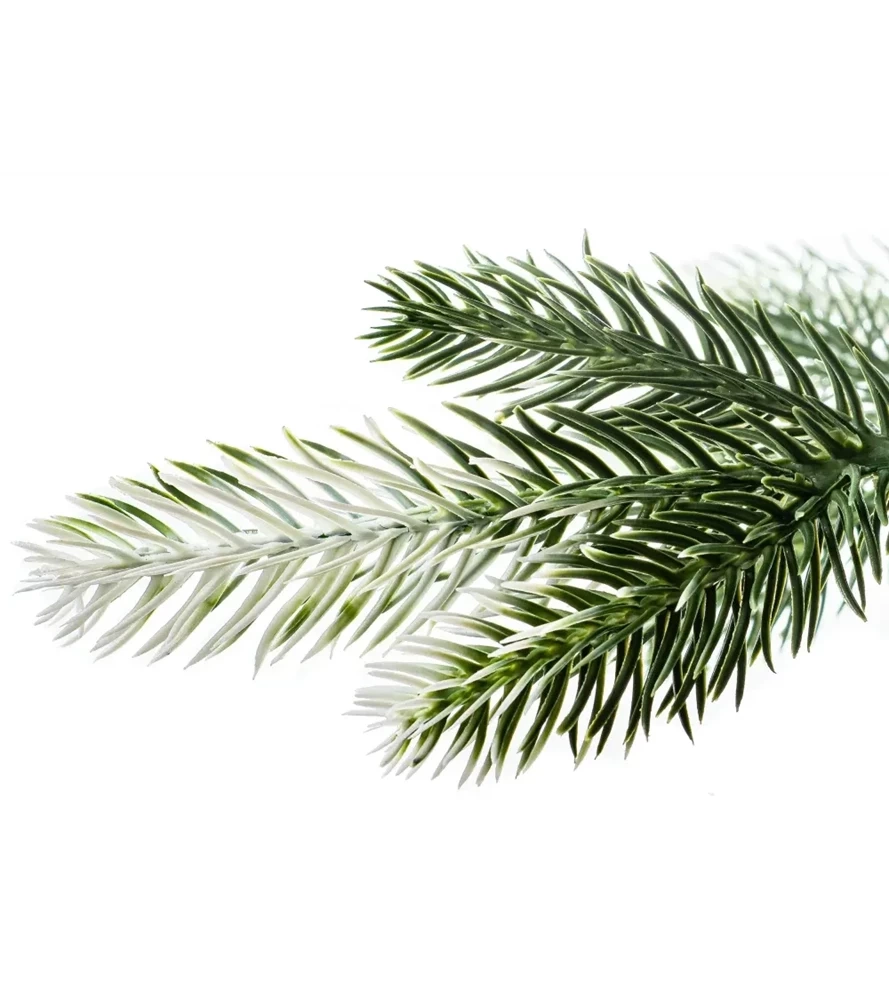 Igły wykonane z PE są miękkie, elastyczne i mają naturalny, zielony kolor. Białe końcówki igieł nadają choince efektowny, oszroniony wygląd, który przywodzi na myśl prawdziwe drzewko pokryte szronem.