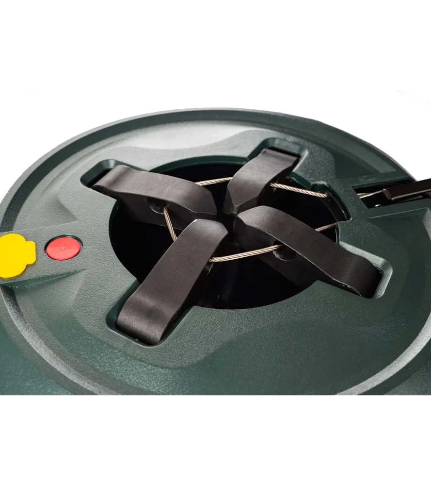 Błyskawiczny Montaż na Pedał: Dzięki automatycznemu systemowi zaciskowemu z linką, możesz pewnie i idealnie prosto unieruchomić choinkę w zaledwie kilka sekund – wystarczy nacisnąć pedał.