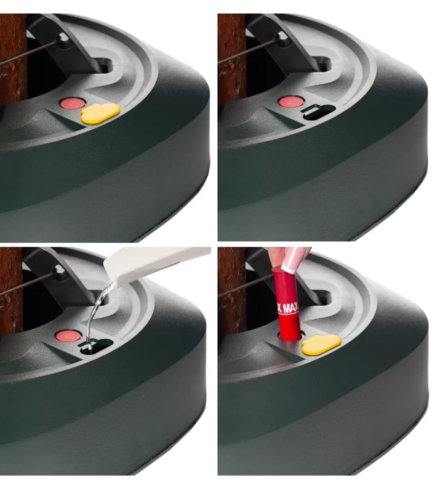 Super Pojemność na Wodę (3,2 L): Duży, zintegrowany zbiornik o pojemności 3,2 litra zapewnia choince stały dopływ wody. Dzięki temu Twoje drzewko utrzyma igły znacznie dłużej. Specjalny wskaźnik poziomu wody poinformuje Cię, kiedy należy uzupełnić płyn.