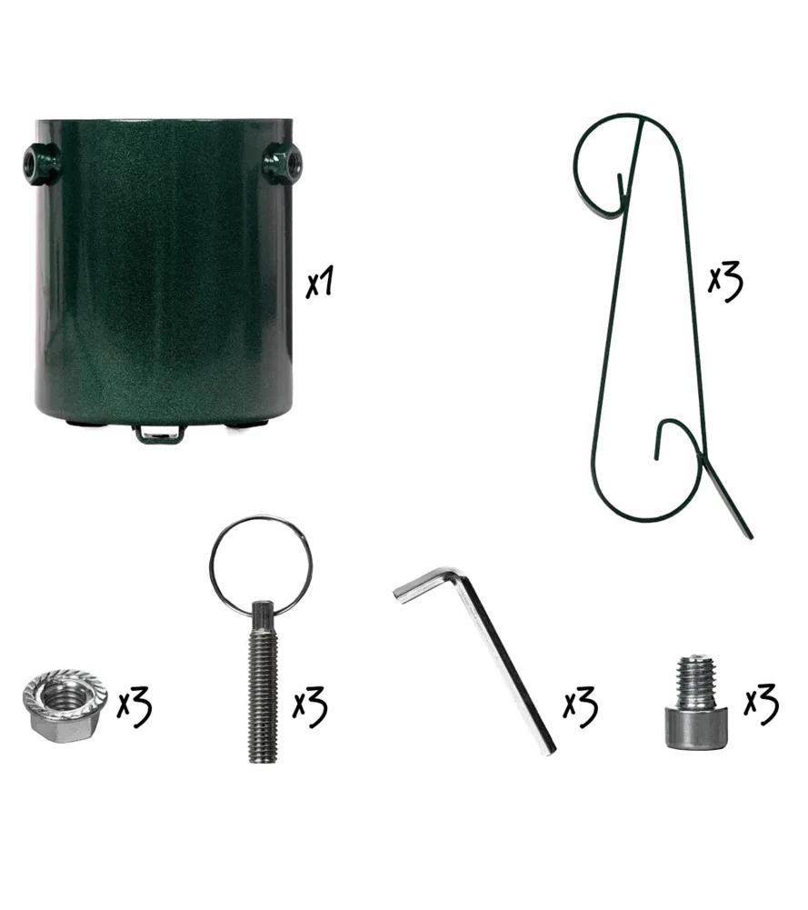- Łatwy i Szybki Montaż: Dzięki trzem solidnym śrubom dociskowym, zakończonym wygodnymi uchwytami w formie pierścieni, osadzenie i wypionowanie choinki jest niezwykle proste i nie wymaga użycia dodatkowych narzędzi.