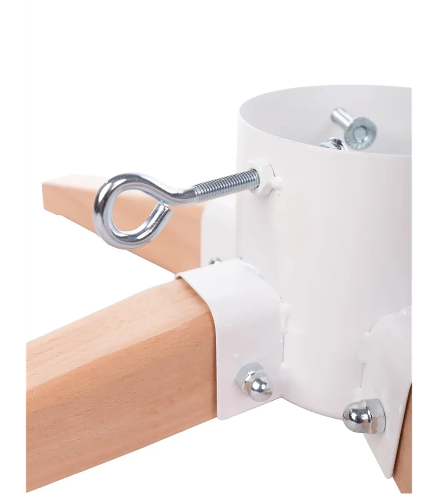 - Wyjątkowa Stabilność: Pięcioramienna podstawa z drewnianych belek (rozstaw 63 cm) zapewnia maksymalną równowagę.