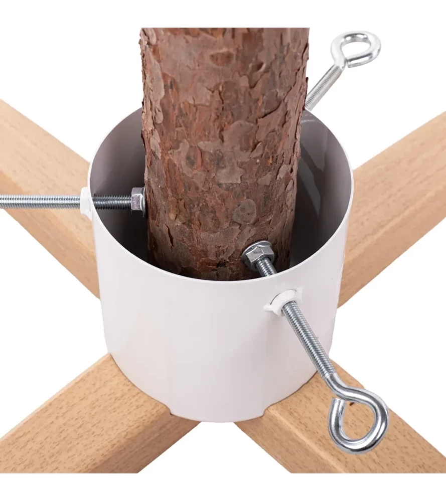 Wysokość stojaka to 16 cm, co zapewnia mu optymalną prezencję. Najważniejsza jest jednak precyzja mocowania. Dzięki solidnym, metalowym śrubom z oczkami, szybko i bez wysiłku unieruchomisz pień choinki w centralnym punkcie, zapewniając mu idealny pion i stuprocentową pewność.