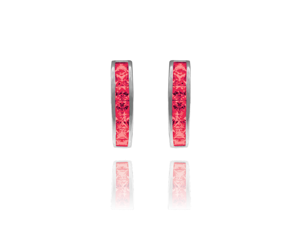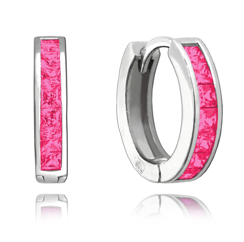 Ciemnoróżowe kolczyki kółka są wygodne do noszenia na co dzień dzięki praktycznemu zapięciu i kształtowi. Różowe cyrkonie pięknie się mienią i dodadzą uroku Twojemu strojowi. Powierzchnia srebra jest rodowana, dzięki czemu kolczyki nie stracą swojego blasku i koloru.