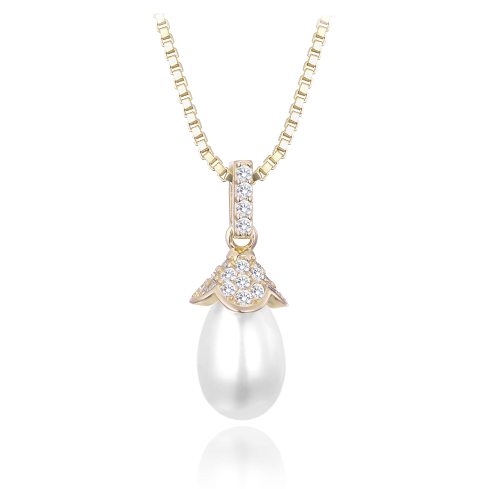 MINET Pozłacany srebrny naszyjnik z naturalnymi perłami i cyrkoniami