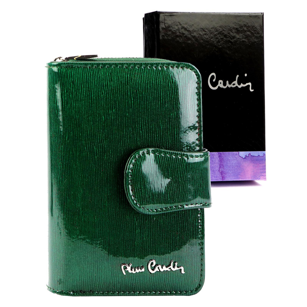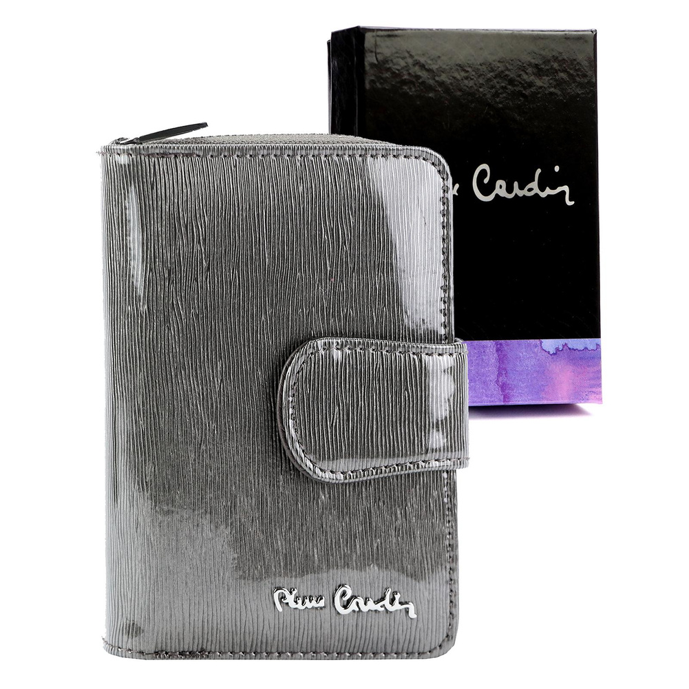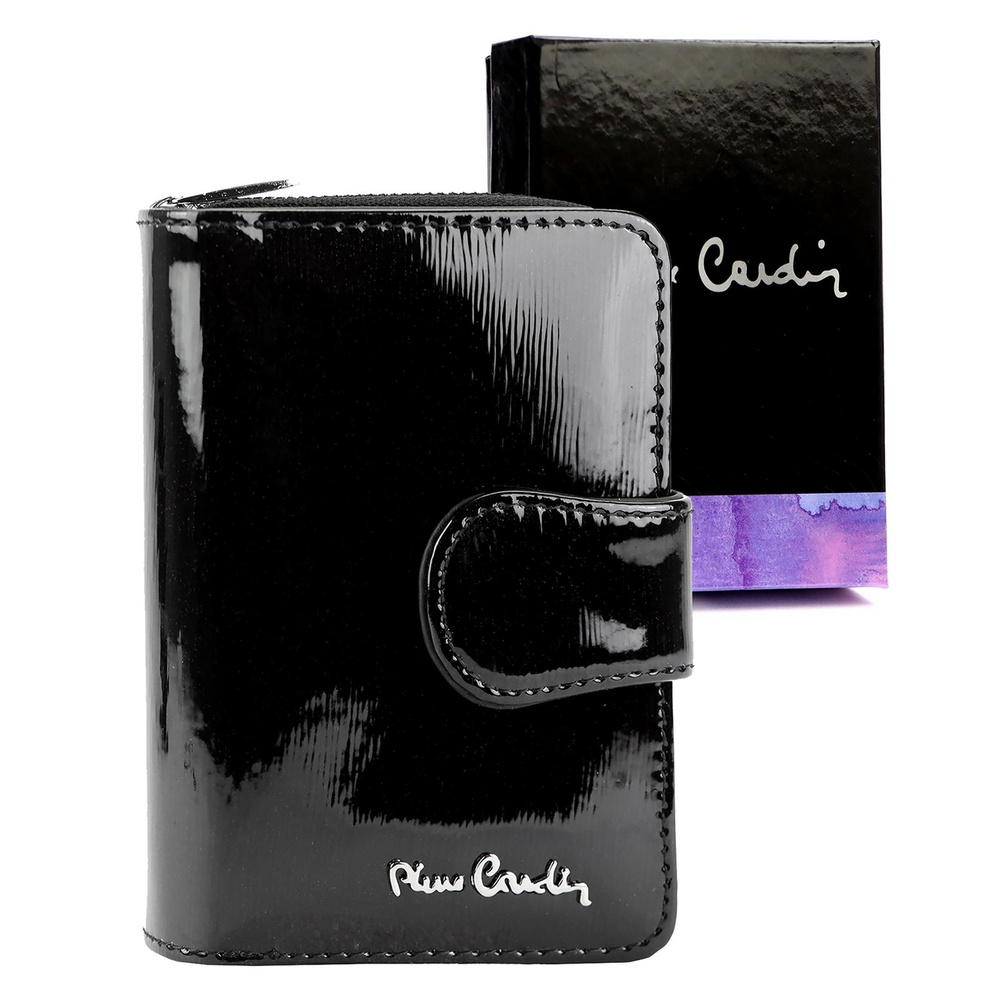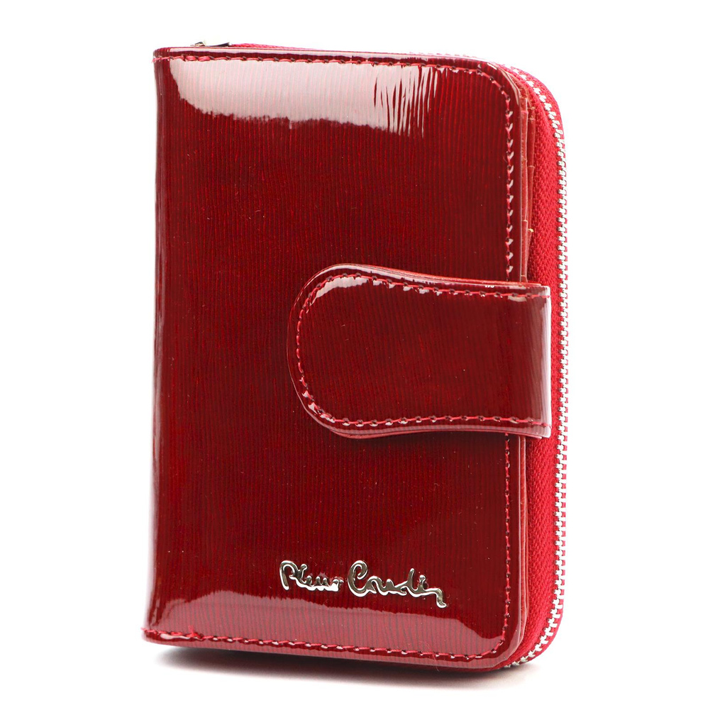 Nieduży portfel damski, wykonany z najwyższej jakości naturalnej, włoskiej skóry licowej lakierowanej. Budowa portfela: - orientacja pionowa, - przegródka na banknoty, - osiem przegródek na karty magnetyczne, - dwa "okienka" na zdjęcie, - kieszeń na drobne, podzielona na dwie części, zamykana na zamek błyskawiczny, - całość zamykana patką z zatrzaskiem. Portfel dostarczany jest w oryginalnym, firmowym pudełku - idealny na prezent.