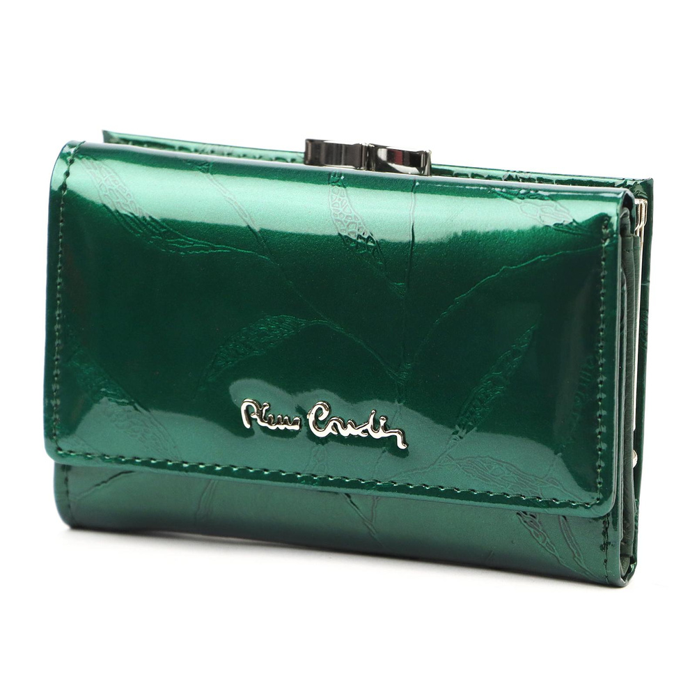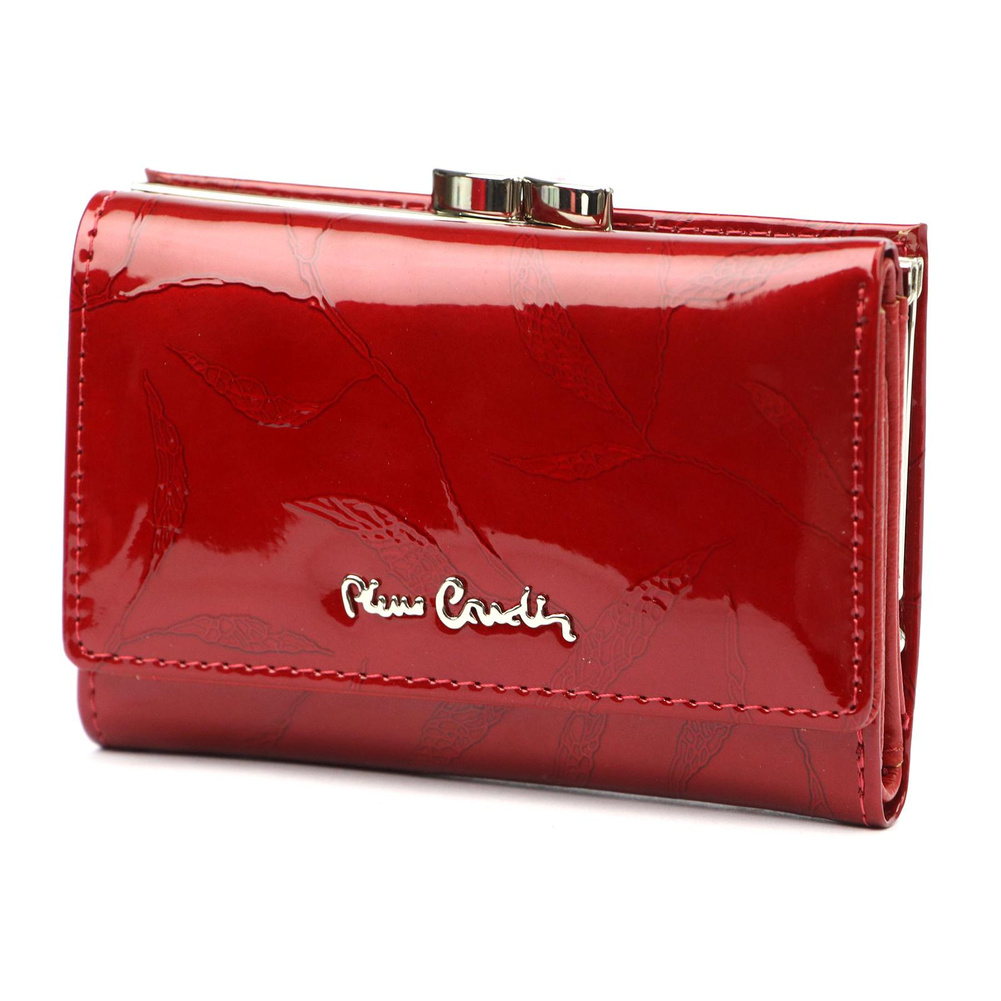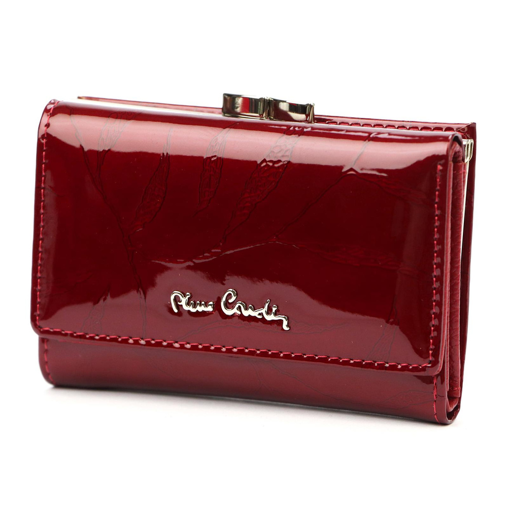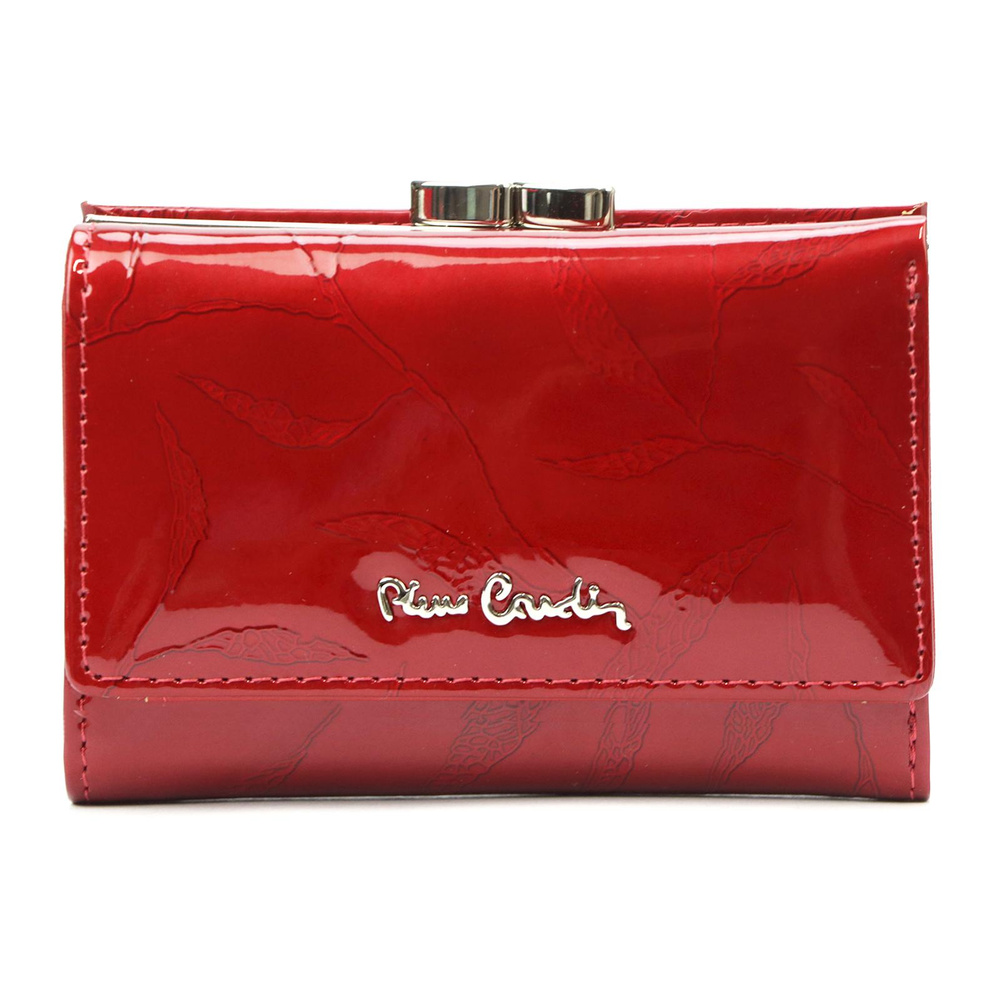 Nieduży portfel damski, wykonany z najwyższej jakości naturalnej, włoskiej skóry licowej lakierowanej, z wytłoczonym, delikatnym motywem liści. Budowa portfela: - orientacja pozioma, - dwie przegródki na banknoty, - trzy przegródki na karty magnetyczne, - "okienko" na zdjęcie, - kieszeń na drobne, podzielona na dwie części, zamykana na "bigiel", - całość zamykana klapą z zatrzaskiem. Portfel dostarczany jest w oryginalnym, firmowym pudełku - idealny na prezent.