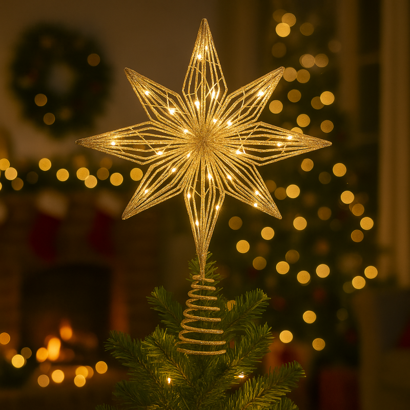 Czubek na choinkę XXL 27cm BOŻE NARODZENIE WOZ11 Spraw, aby twoja choinka lśniła dzięki stylowej gwieździe świątecznej.