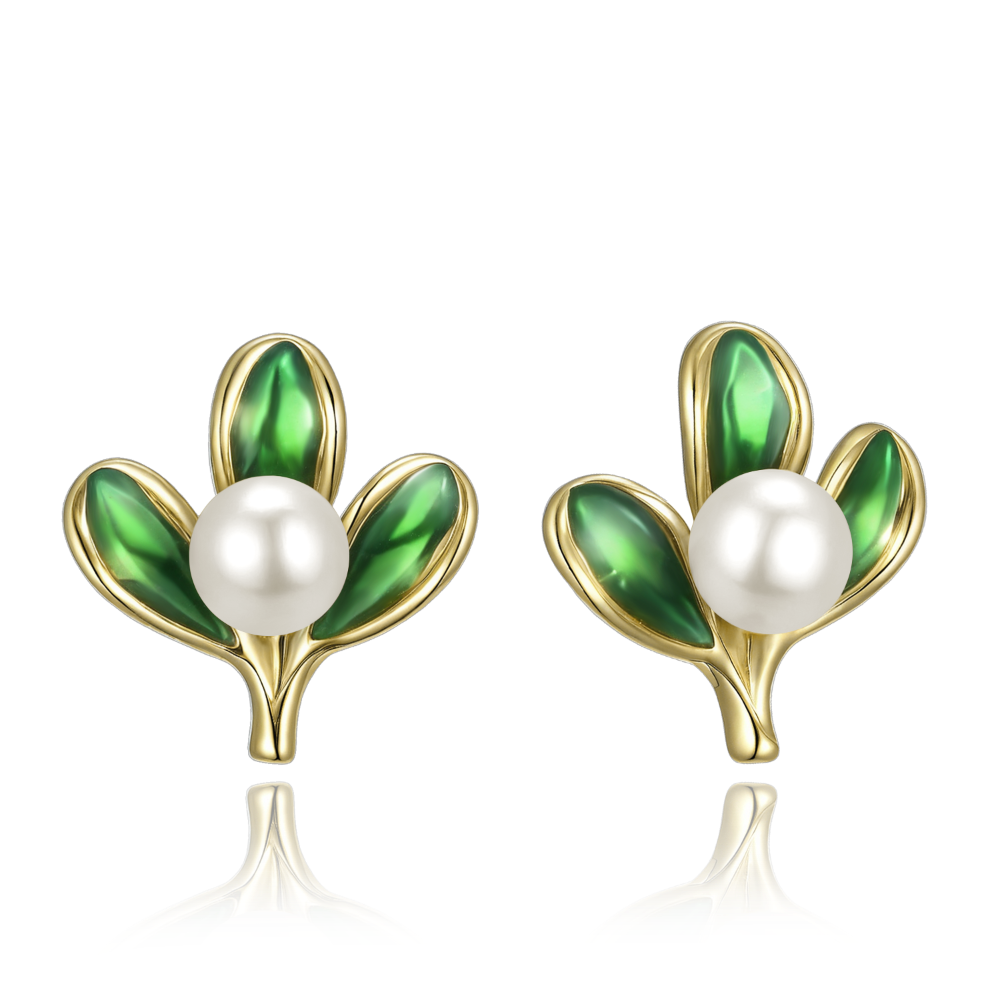 MINET Pozłacane srebrne kolczyki jemioła z perłami