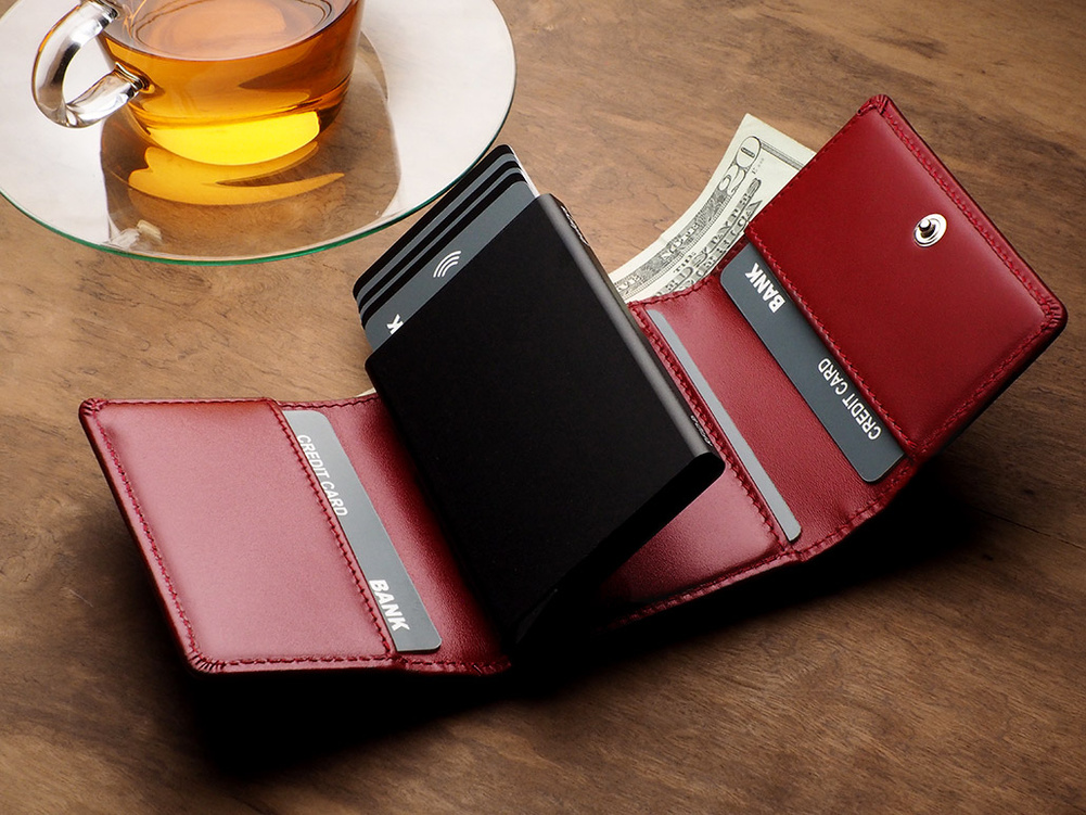 Wykonany z delikatnej skóry Italia. Przechowa wiele kart i dokumentów, zapewniając do nich łatwy dostęp, dzięki specjalnemu mechanizmowi stopniowego wysuwania kart. Dodatkowa, bardzo przestronna kieszonka na banknoty, klapka zapinana na zatrzask - to wszystko składa się na elegancką funkcjonalność, która Cię zachwyci! Dzięki technologii blokowania RFID zastosowanej w designie portfela, Twoje wrażliwe dane oraz środki na kartach płatniczych są całkowicie bezpieczne i chronione przed nieautoryzowanym sczytaniem lub kradzieżą.
