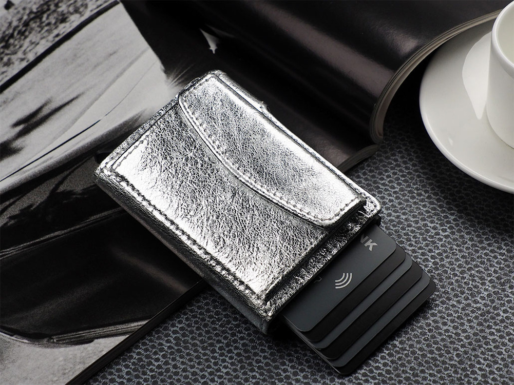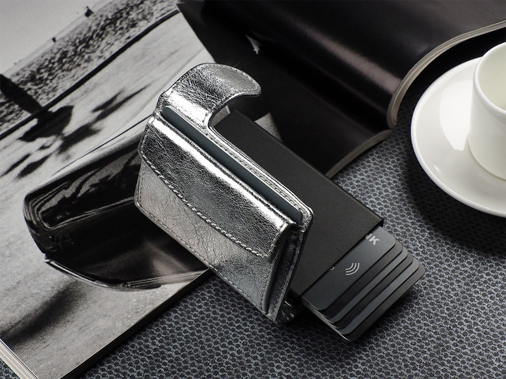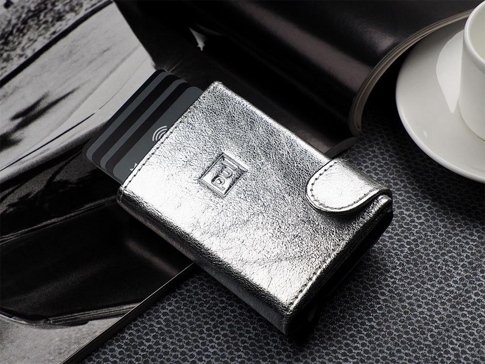 Duża pojemność: wewnątrz portfel przechowa karty, banknoty oraz niezbędny bilon - w eleganckiej, zewnętrznej kieszonce. Łatwa dostępność: specjalny mechanizm stopniowo wysuwający karty pozwala szybko sięgnąć po tę, której szukamy. Zastosowana w designie portfela technologia blokowania RFID zapewnia pełną ochronę Twoich kart płatniczych oraz dokumentów. W każdym miejscu i o każdym czasie, możesz być spokojna - wrażliwe dane osobowe oraz środki pieniężne są zabezpieczone przed kradzieżą lub nieautoryzowanym skanowaniem.