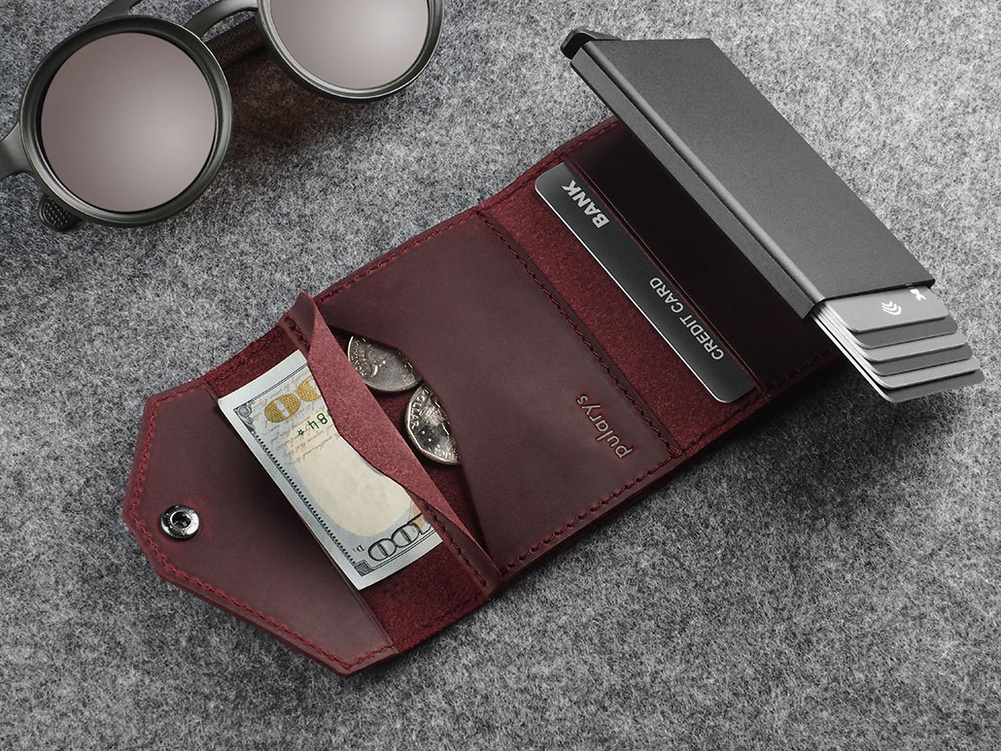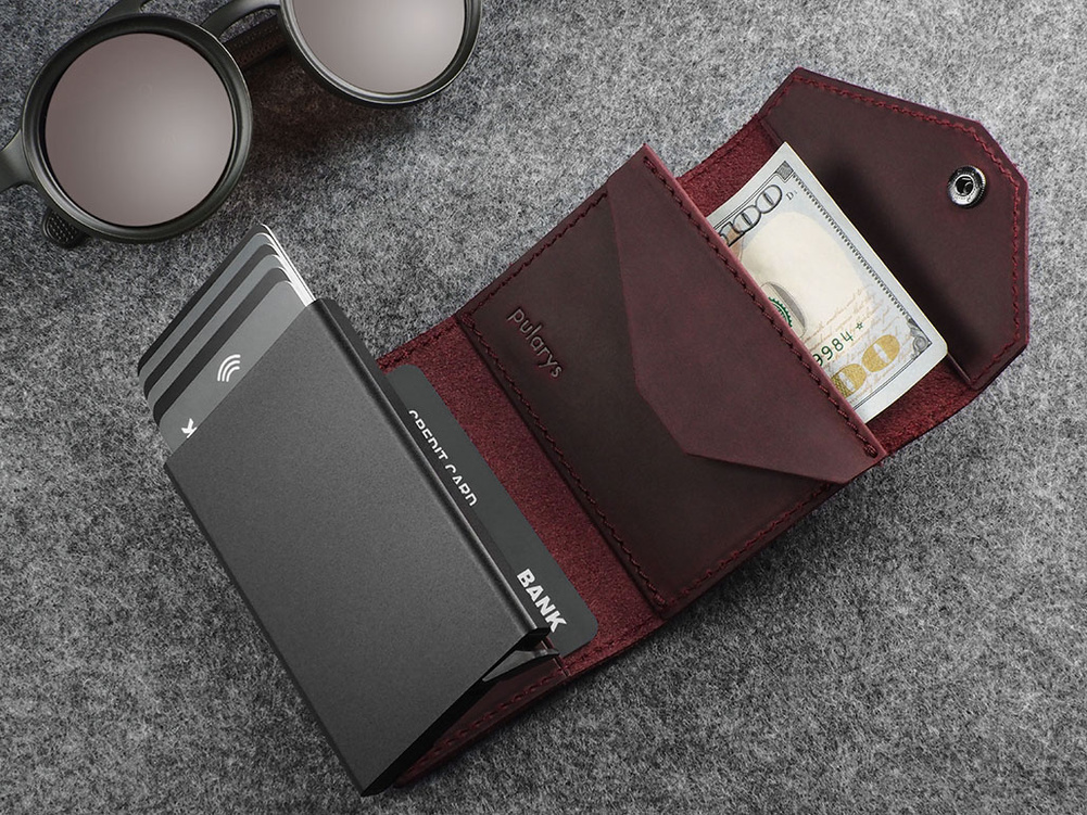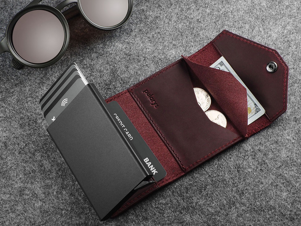 Zdumiewająco pojemny - przechowa wiele kart płatniczych i dokumentów. Specjalny mechanizm stopniowego wysuwania kart zapewnia do nich szybki i łatwy dostęp. Elegancka funkcjonalność tego portfela to również dodatkowa kieszeń na banknoty oraz kieszonka na bilon. Dzięki zastosowanej w jego konstrukcji technologii RFID, Twoje wrażliwe dane oraz środki na kartach płatniczych są całkowicie bezpieczne i chronione przed nieautoryzowanym skanowaniem lub kradzieżą.