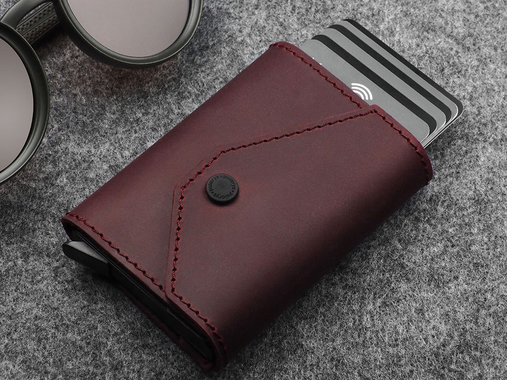Rozmiar: 6,5 x 10 x 2,5 cm Materiał: Skóra Hunter Kieszeń na banknoty Kieszeń na bilon Mieści 8 kart Wzór zarejestrowany ® Zabezpieczenie RFID Kompaktowy sznyt.