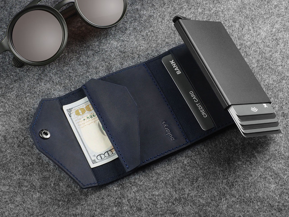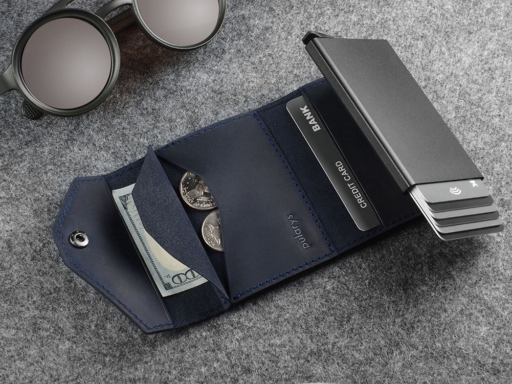 Zdumiewająco pojemny - przechowa wiele kart płatniczych i dokumentów. Specjalny mechanizm stopniowego wysuwania kart zapewnia do nich szybki i łatwy dostęp. Elegancka funkcjonalność tego portfela to również dodatkowa kieszeń na banknoty oraz kieszonka na bilon. Dzięki zastosowanej w jego konstrukcji technologii RFID, Twoje wrażliwe dane oraz środki na kartach płatniczych są całkowicie bezpieczne i chronione przed nieautoryzowanym skanowaniem lub kradzieżą.