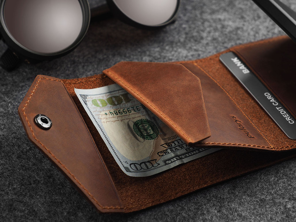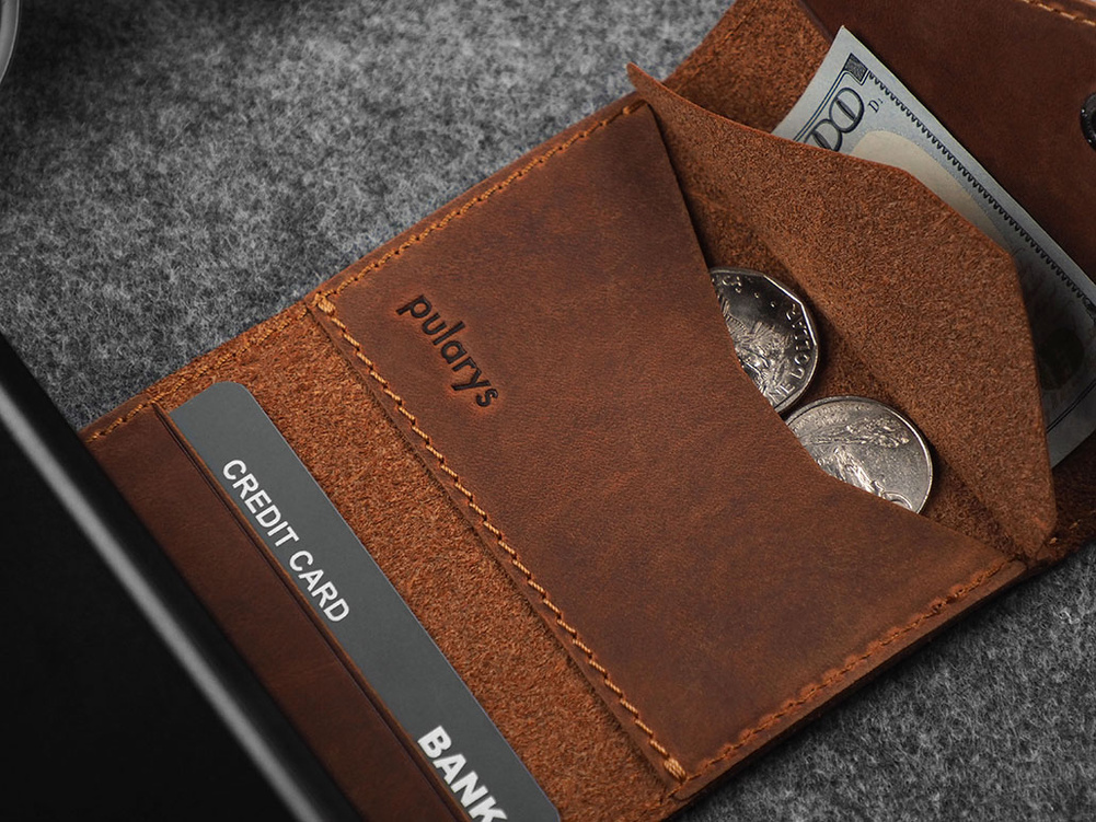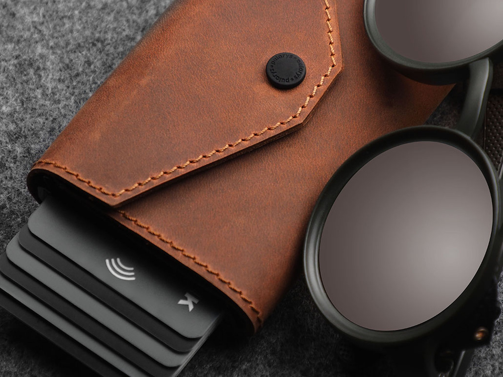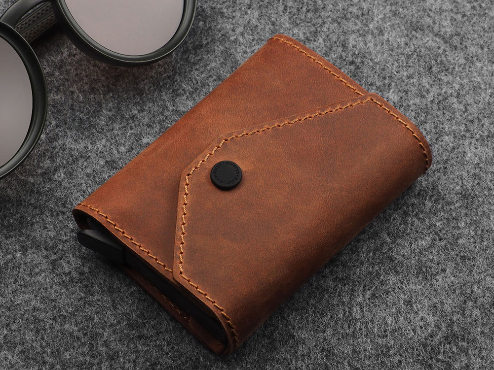 Portfel wykonany ze specjalnie wyselekcjonowanej, woskowanej skóry Hunter.