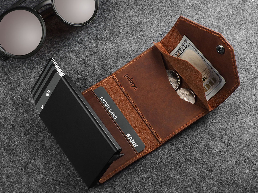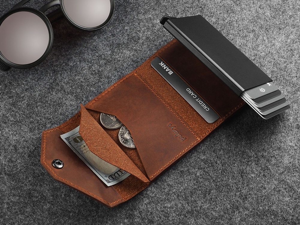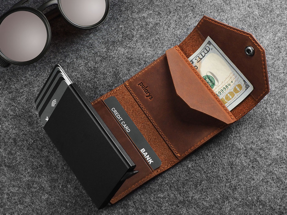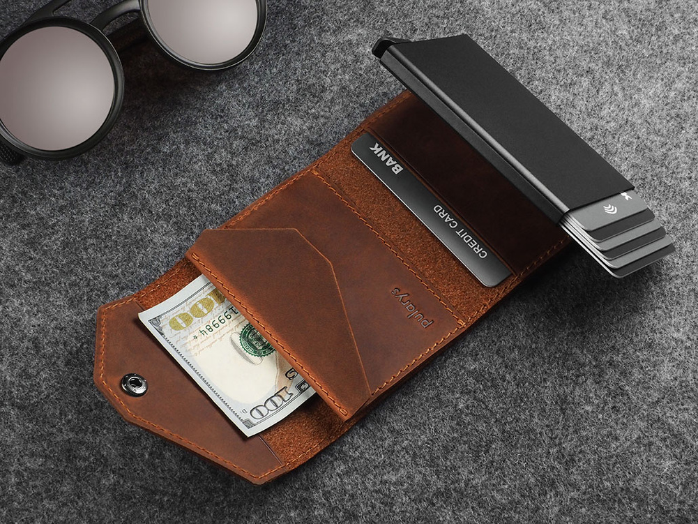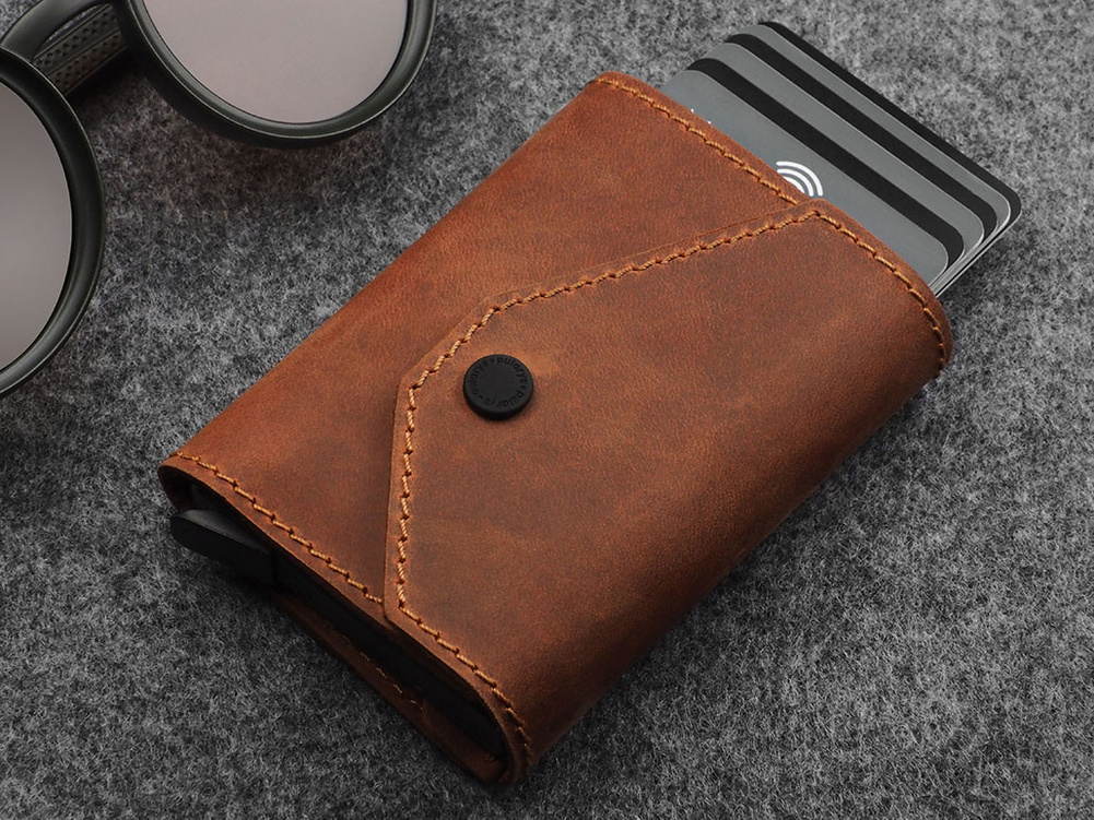 Zdumiewająco pojemny - przechowa wiele kart płatniczych i dokumentów. Specjalny mechanizm stopniowego wysuwania kart zapewnia do nich szybki i łatwy dostęp. Elegancka funkcjonalność tego portfela to również dodatkowa kieszeń na banknoty oraz kieszonka na bilon. Dzięki zastosowanej w jego konstrukcji technologii RFID, Twoje wrażliwe dane oraz środki na kartach płatniczych są całkowicie bezpieczne i chronione przed nieautoryzowanym skanowaniem lub kradzieżą.