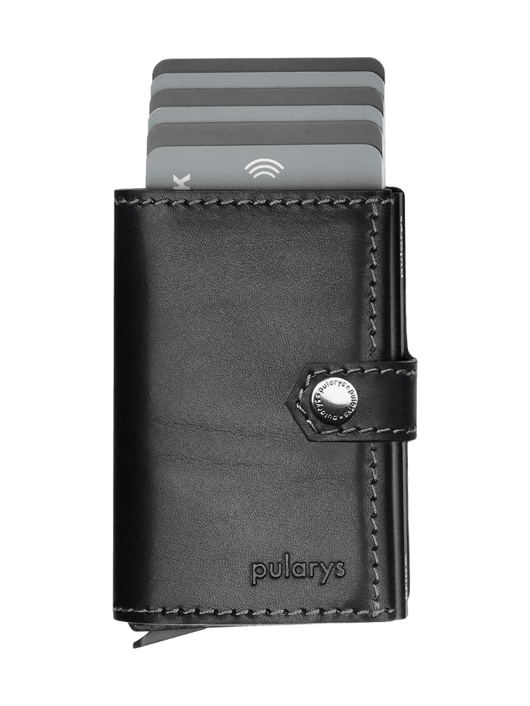 Dwie łatwo dostępne kieszonki idealnie zorganizują dokumenty, karty lub wizytówki. Dodatkowym atutem jest unikalna przegródka na banknoty, wykonana w całości ze skóry. Dzięki technologii blokowania RFID zastosowanej w designie portfela, Twoje wrażliwe dane oraz środki na kartach płatniczych są całkowicie bezpieczne i chronione przed nieautoryzowanym sczytaniem lub kradzieżą. Specjalny mechanizm stopniowego wysuwania kart pozwala szybko sięgnąć po tę, której szukamy.