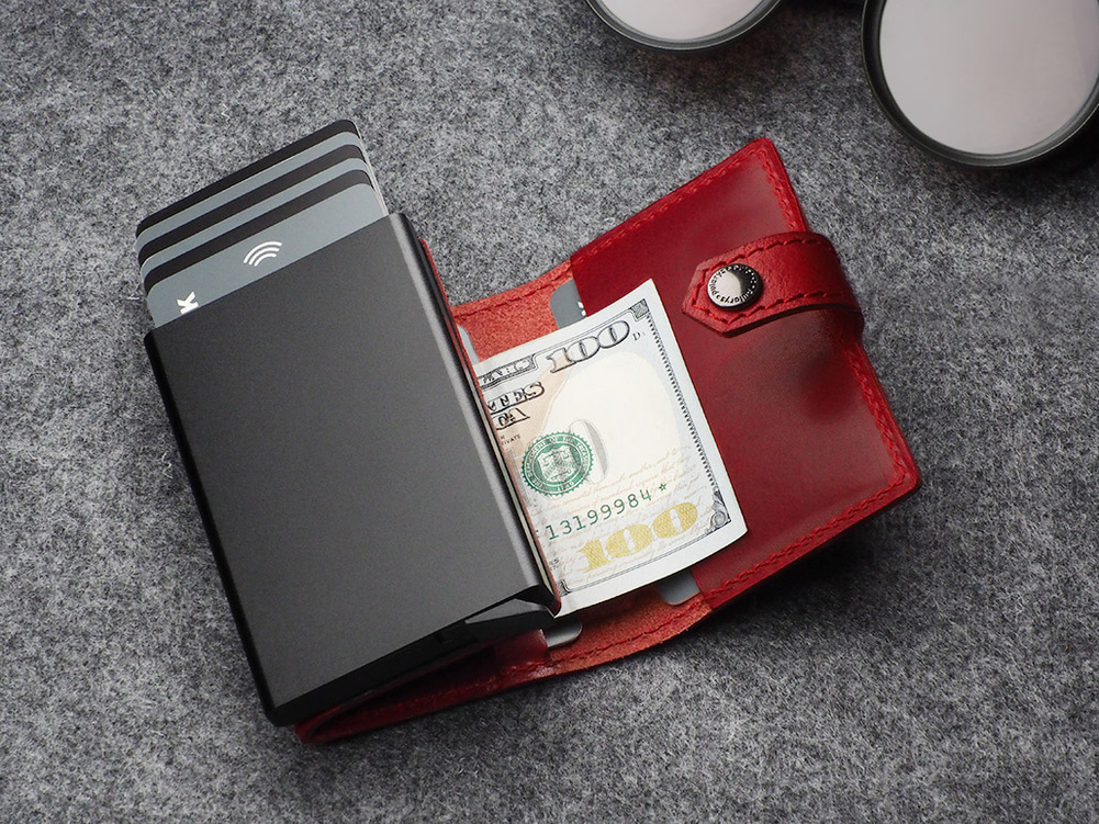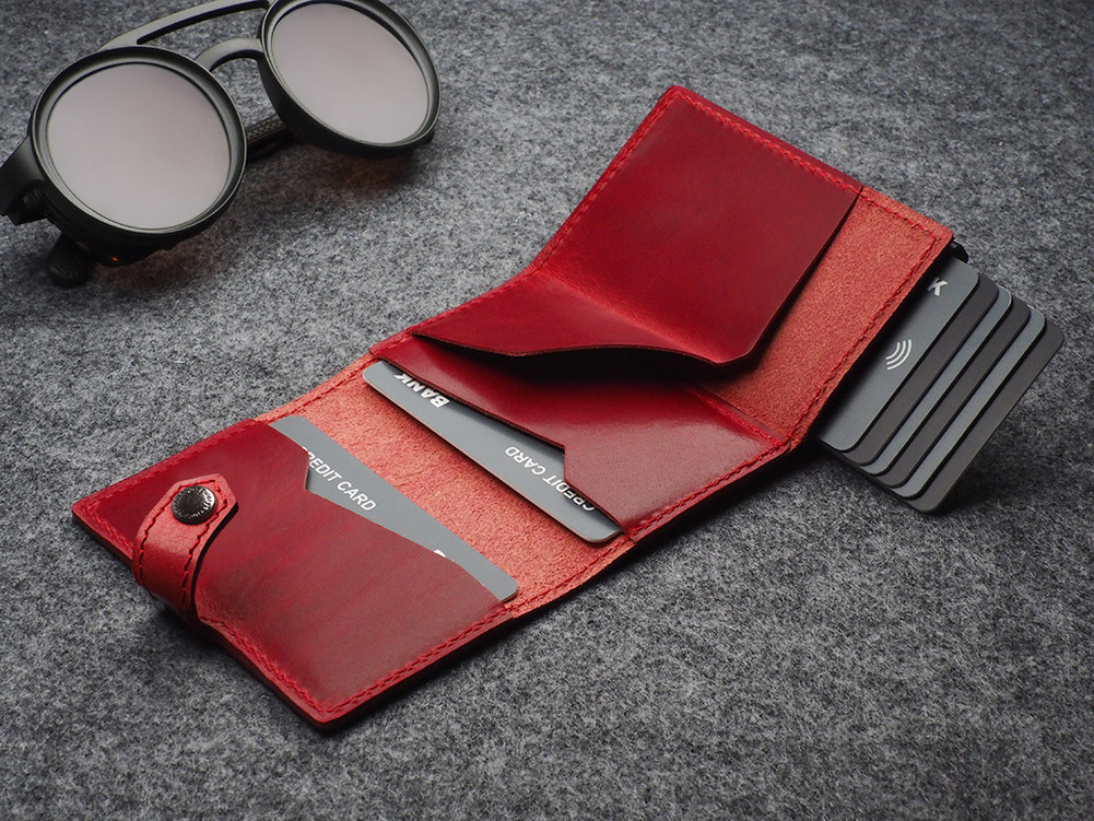 Dwie łatwo dostępne kieszonki idealnie zorganizują dokumenty, karty lub wizytówki. Dodatkowym atutem jest unikalna przegródka na banknoty, wykonana w całości ze skóry. Dzięki technologii blokowania RFID zastosowanej w designie portfela, Twoje wrażliwe dane oraz środki na kartach płatniczych są całkowicie bezpieczne i chronione przed nieautoryzowanym sczytaniem lub kradzieżą. Specjalny mechanizm stopniowego wysuwania kart pozwala szybko sięgnąć po tę, której szukamy.