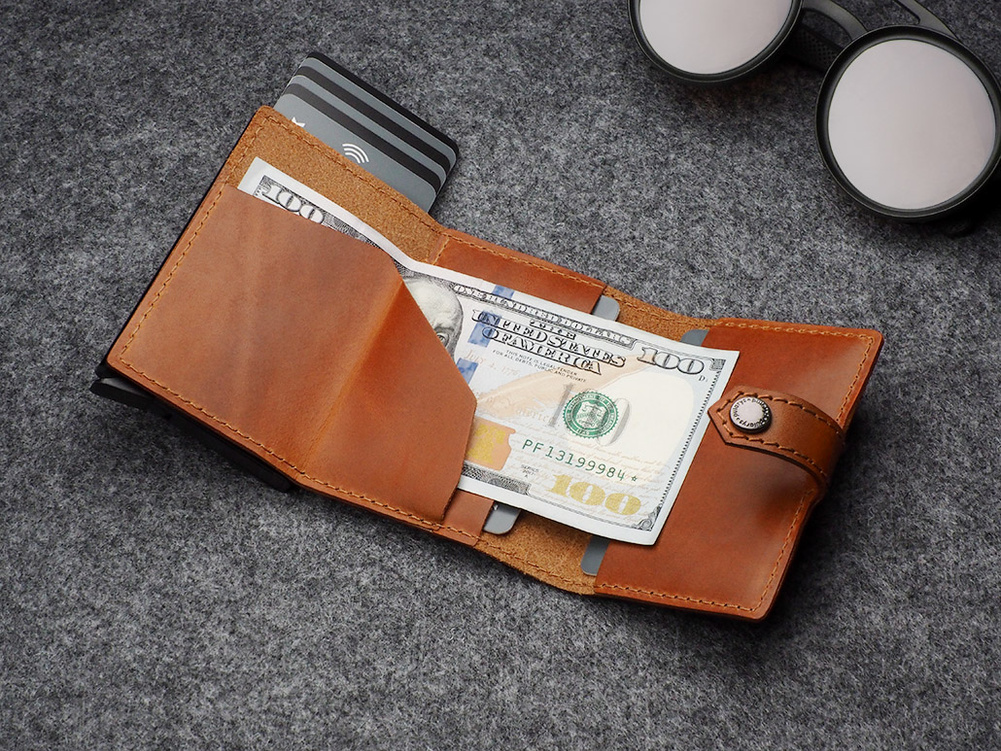 Dwie łatwo dostępne kieszonki idealnie zorganizują dokumenty, karty lub wizytówki. Dodatkowym atutem jest skórzana kieszeń na banknoty. Dzięki technologii RFID zastosowanej w designie portfela, Twoje wrażliwe dane oraz środki na kartach płatniczych są całkowicie bezpieczne i chronione przed nieautoryzowanym sczytaniem lub kradzieżą. Zaprojektowany uchwyt na airtag pozwala na wygodne przechowywanie dodatkowego zabezpieczenia Twojego portfela. Specjalny mechanizm stopniowego wysuwania kart pozwala szybko sięgnąć po tę, której szukamy. Wzór zarejestrowany - unikalny i oryginalny!
