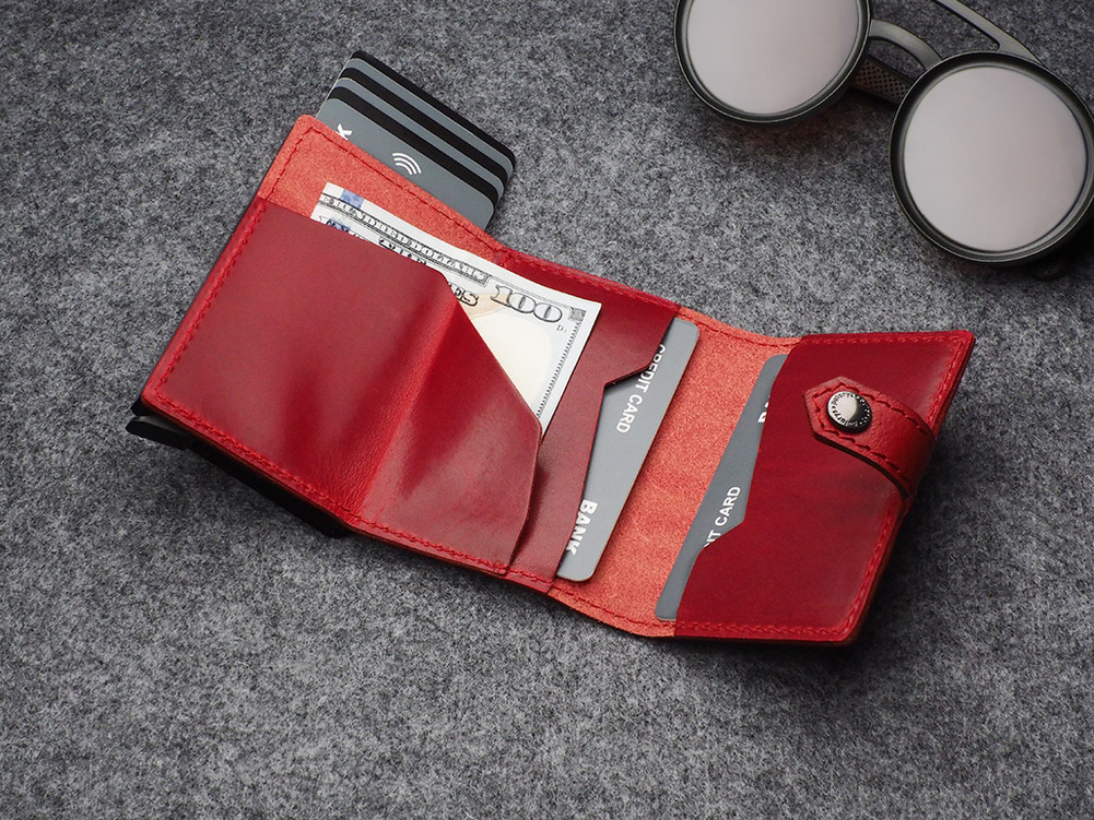 Dwie łatwo dostępne kieszonki idealnie zorganizują dokumenty, karty lub wizytówki. Dodatkowym atutem jest skórzana kieszeń na banknoty. Dzięki technologii RFID zastosowanej w designie portfela, Twoje wrażliwe dane oraz środki na kartach płatniczych są całkowicie bezpieczne i chronione przed nieautoryzowanym sczytaniem lub kradzieżą. Specjalny mechanizm stopniowego wysuwania kart pozwala szybko sięgnąć po tę, której szukamy. Wzór zarejestrowany - unikalny i oryginalny!