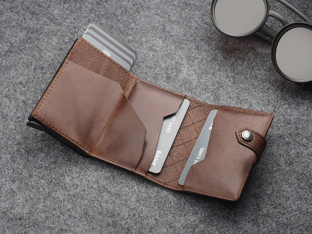 Karty i banknoty masz zawsze pod ręką, uporządkowane w dwóch łatwo dostępnych kieszonkach. Dodatkowym ułatwieniem jest elastyczna gumka na banknoty i nie tylko. Dzięki technologii RFID zastosowanej w designie portfela, Twoje wrażliwe dane oraz środki na kartach płatniczych są całkowicie bezpieczne i chronione przed nieautoryzowanym sczytaniem lub kradzieżą. Specjalny mechanizm stopniowego wysuwania kart pozwala szybko sięgnąć po tę, której szukamy. Wzór zarejestrowany - unikalny i oryginalny!