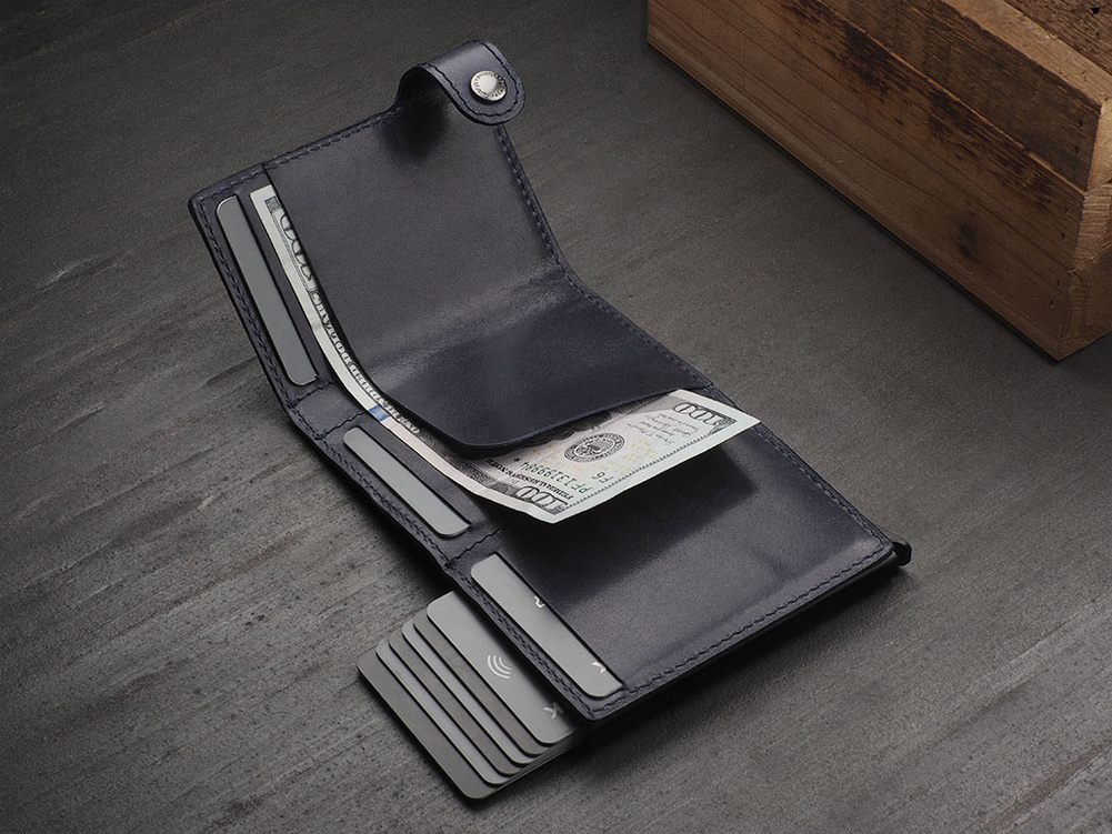 Wykonany z roślinnie garbowanej skóry Nomad. Karty, banknoty - masz je zawsze pod ręką, uporządkowane w kilku łatwo dostępnych kieszonkach. Specjalny mechanizm stopniowego wysuwania kart zapewnia łatwy i szybki dostęp do zawartości portfela. Dzięki technologii blokowania RFID zastosowanej w designie portfela, Twoje wrażliwe dane oraz środki na kartach płatniczych są całkowicie bezpieczne i chronione przed nieautoryzowanym sczytaniem lub kradzieżą.