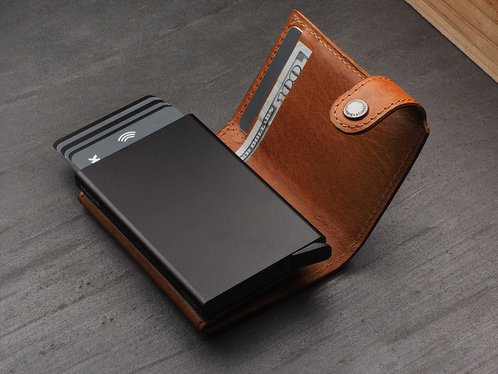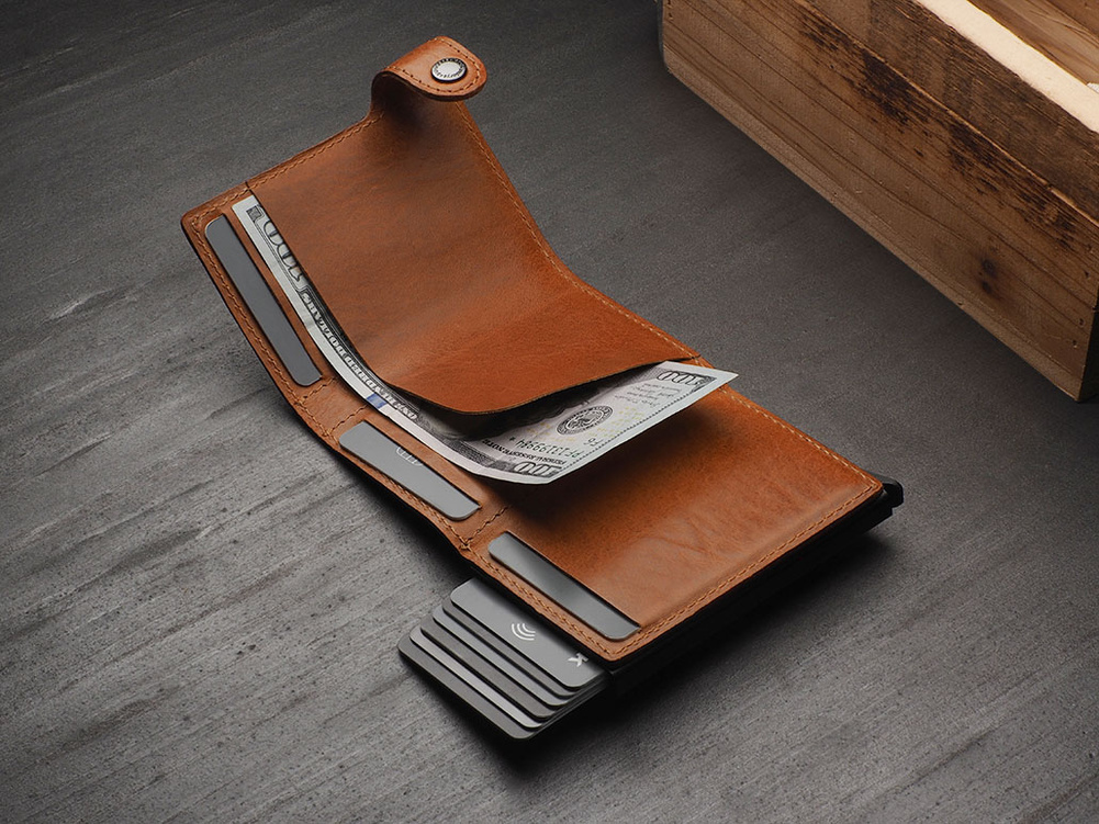 Wykonany z roślinnie garbowanej skóry Nomad. Karty, banknoty - masz je zawsze pod ręką, uporządkowane w kilku łatwo dostępnych kieszonkach. Specjalny mechanizm stopniowego wysuwania kart zapewnia łatwy i szybki dostęp do zawartości portfela. Dzięki technologii blokowania RFID zastosowanej w designie portfela, Twoje wrażliwe dane oraz środki na kartach płatniczych są całkowicie bezpieczne i chronione przed nieautoryzowanym sczytaniem lub kradzieżą.