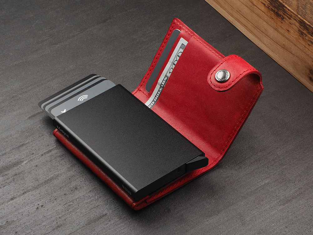 Wykonany z roślinnie garbowanej skóry Nomad. Karty, banknoty - masz je zawsze pod ręką, uporządkowane w kilku łatwo dostępnych kieszonkach. Specjalny mechanizm stopniowego wysuwania kart zapewnia łatwy i szybki dostęp do zawartości portfela. Dzięki technologii blokowania RFID zastosowanej w designie portfela, Twoje wrażliwe dane oraz środki na kartach płatniczych są całkowicie bezpieczne i chronione przed nieautoryzowanym sczytaniem lub kradzieżą.