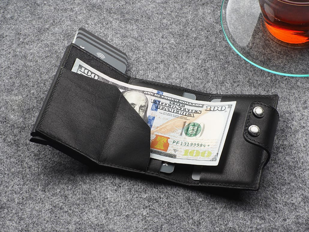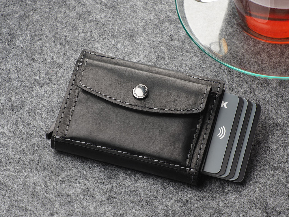 Wykonany z roślinnie garbowanej skóry Nomad. Pojemny - przechowa wiele kart i dokumentów, zapewniając do nich łatwy dostęp, dzięki specjalnemu mechanizmowi stopniowego wysuwania kart. Dodatkowym atutem jest unikalna przegródka na banknoty, wykonana w całości ze skóry. Wewnątrz portfel przechowa wiele kart i banknoty oraz niezbędny bilon - w eleganckiej, zewnętrznej kieszonce. Klapka zapinana jest na dwa eleganckie zatrzaski. Dzięki technologii blokowania RFID zastosowanej w designie portfela, Twoje wrażliwe dane oraz środki na kartach płatniczych są całkowicie bezpieczne i chronione przed nieautoryzowanym sczytaniem lub kradzieżą.