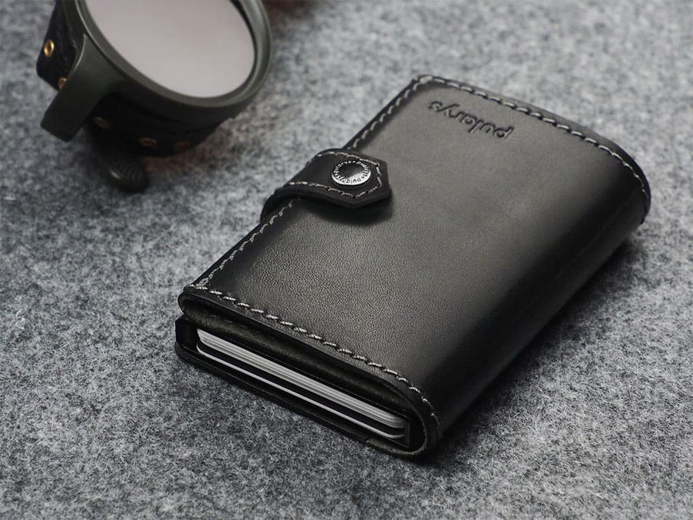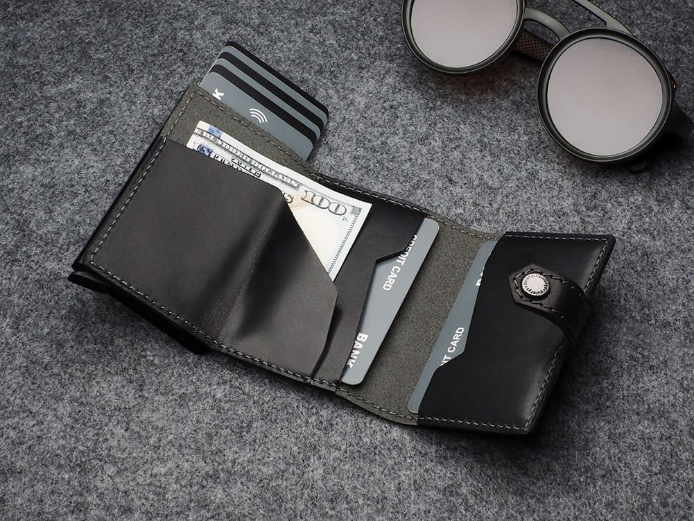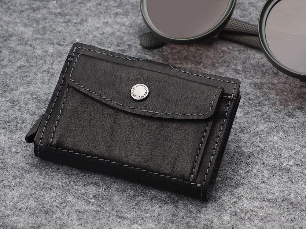 Dwie łatwo dostępne kieszonki idealnie zorganizują dokumenty, karty lub wizytówki. Dodatkowym atutem jest unikalna przegródka na banknoty, wykonana w całości ze skóry. Niezbędny bilon przechowasz w eleganckiej, zewnętrznej kieszonce. Dzięki technologii blokowania RFID zastosowanej w designie portfela, Twoje wrażliwe dane oraz środki na kartach płatniczych są całkowicie bezpieczne i chronione przed nieautoryzowanym sczytaniem lub kradzieżą. Specjalny mechanizm stopniowego wysuwania kart pozwala szybko sięgnąć po tę, której szukamy.