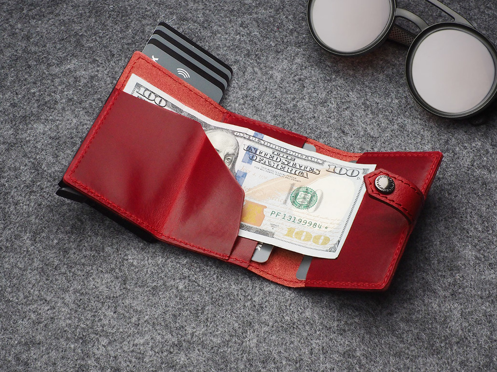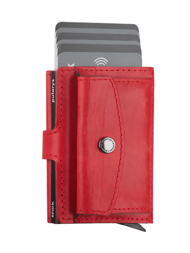 Dwie łatwo dostępne kieszonki idealnie zorganizują dokumenty, karty lub wizytówki. Dodatkowym atutem jest unikalna przegródka na banknoty, wykonana w całości ze skóry. Niezbędny bilon przechowasz w eleganckiej, zewnętrznej kieszonce. Dzięki technologii blokowania RFID zastosowanej w designie portfela, Twoje wrażliwe dane oraz środki na kartach płatniczych są całkowicie bezpieczne i chronione przed nieautoryzowanym sczytaniem lub kradzieżą. Specjalny mechanizm stopniowego wysuwania kart pozwala szybko sięgnąć po tę, której szukamy.