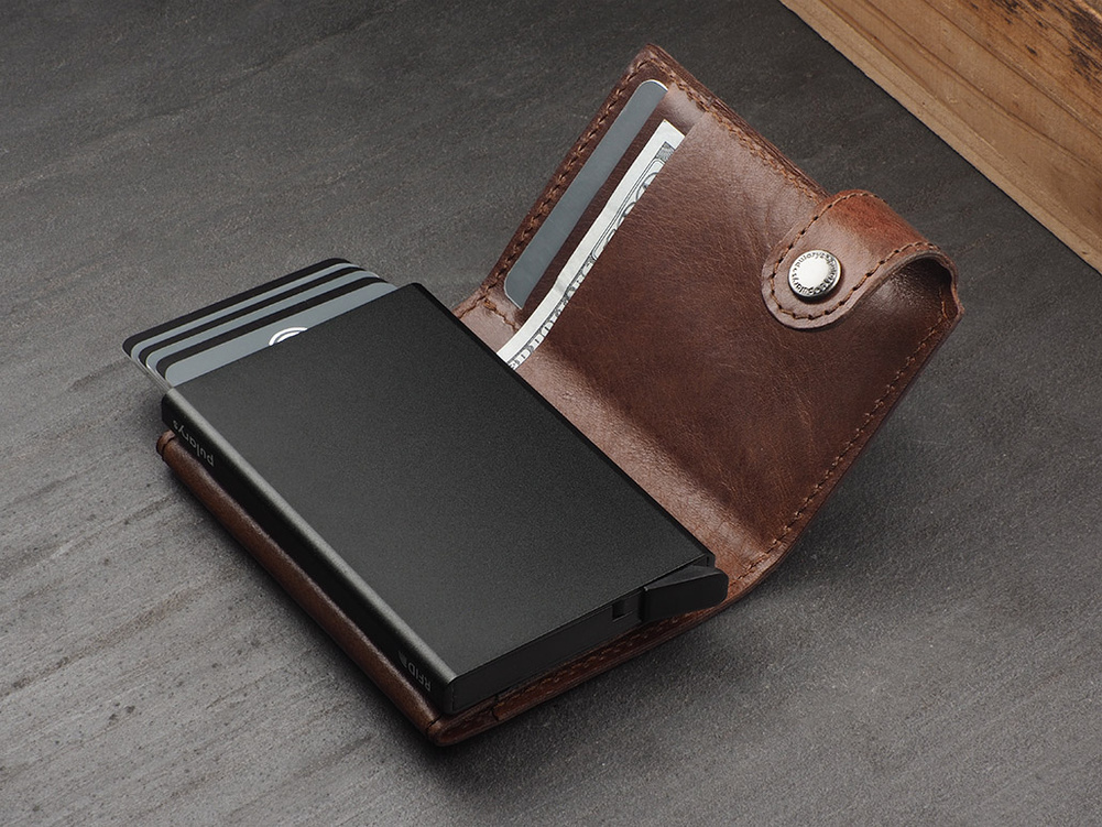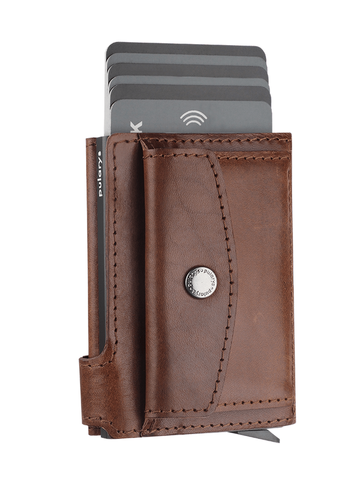 Wykonany z roślinnie garbowanej skóry Nomad. Staranne wykończenie oraz subtelne przeszycia zadowolą każdego miłośnika perfekcyjnego detalu. Duża pojemność: wewnątrz portfel przechowa wiele kart i banknoty oraz niezbędny bilon - w eleganckiej, zewnętrznej kieszonce. Łatwa dostępność: specjalny mechanizm stopniowo wysuwający karty pozwala szybko sięgnąć po tę, której szukamy. Zastosowana w designie portfela technologia blokowania RFID zapewnia pełną ochronę Twoich kart płatniczych oraz dokumentów. W każdym miejscu i o każdym czasie, możesz być spokojna/y - wrażliwe dane osobowe oraz środki pieniężne są zabezpieczone przed kradzieżą lub nieautoryzowanym skanowaniem.