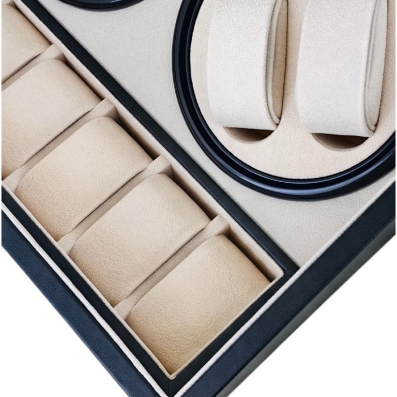 Dodatkowo posiada 6 slotów z poduszeczkami na zegarki Cechy produktu: - eleganckie wykończenie ekoskóra - wbudowany, niemal bezgłośny silnik elektryczny - wnętrze
