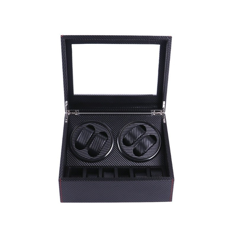 Dodatkowo posiada 6 slotów z poduszeczkami na zegarki Cechy produktu: - eleganckie wykończenie ekoskóra imitującą karbon - wbudowany, niemal bezgłośny silnik