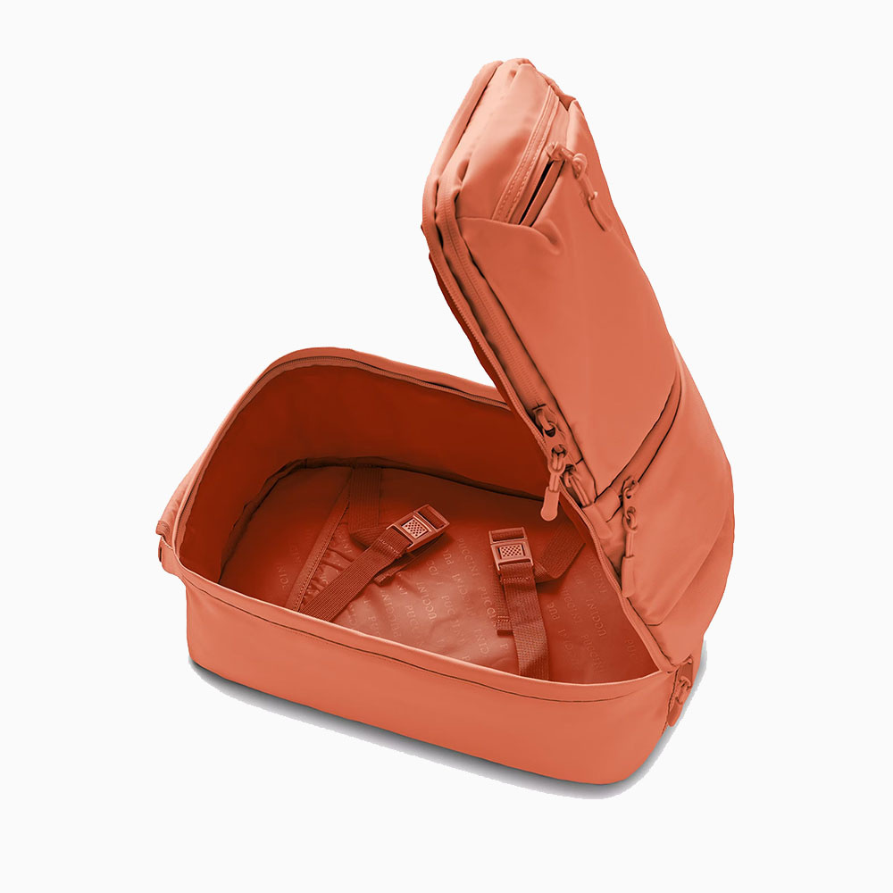 w głównej komorze duża kieszeń otwarta (np. na tablet) oraz pasy zabezpieczające zawartość,