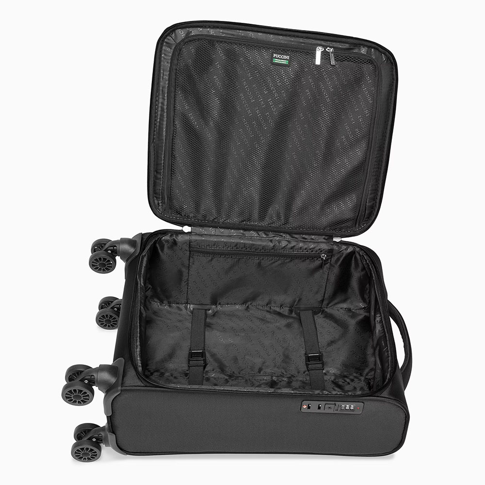 Walizka kabinowa PUCCINI Kos Collection to idealne połączenie lekkości, funkcjonalności i wygody, stworzone z myślą o podróżnych ceniących komfort i dobrą organizację. Doskonale sprawdzi się podczas podróży samolotem, samochodem czy pociągiem – jej kompaktowe wymiary pozwalają wykorzystać ją jako bagaż podręczny, a przemyślane wnętrze ułatwia szybkie i wygodne pakowanie.