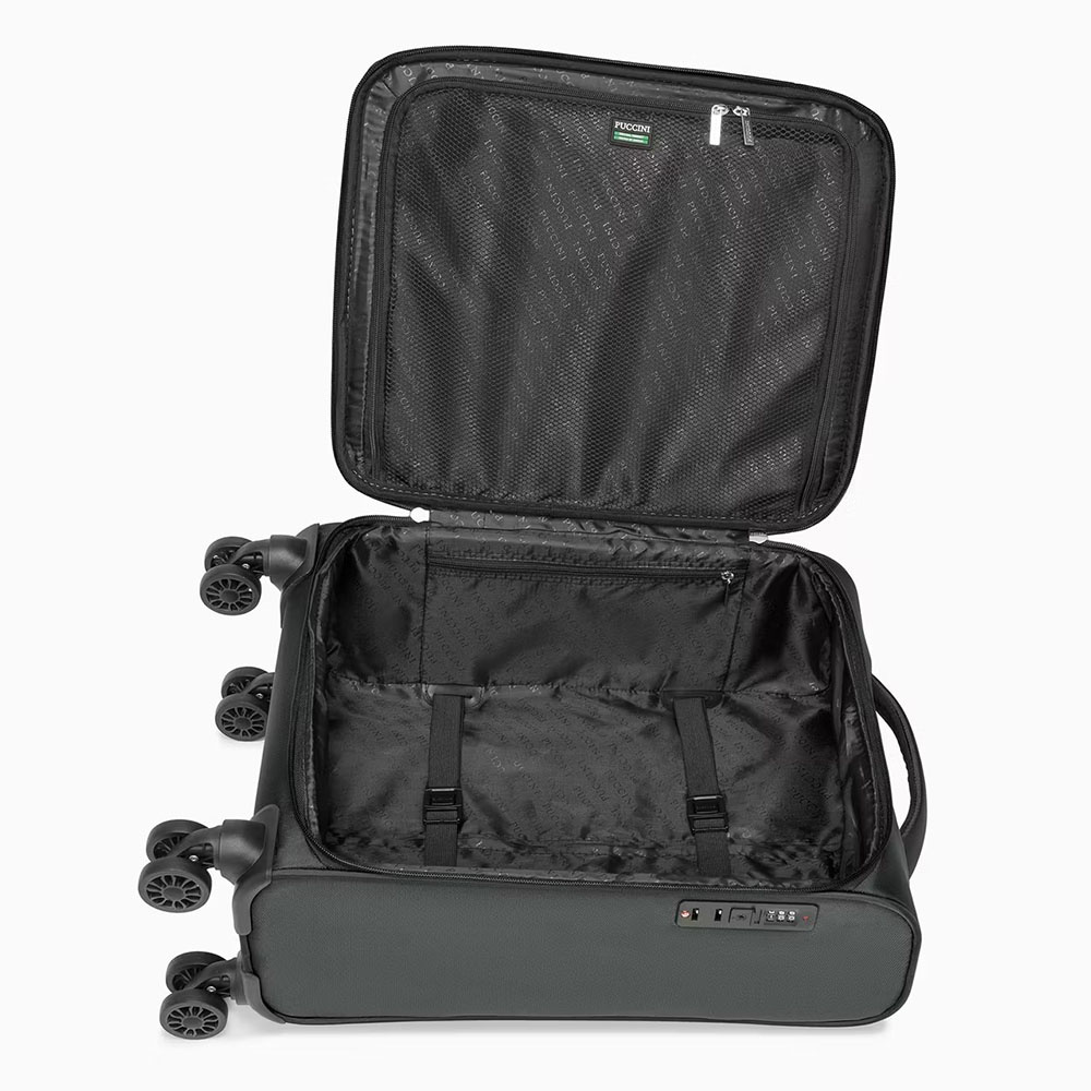 Walizka kabinowa PUCCINI Kos Collection to idealne połączenie lekkości, funkcjonalności i wygody, stworzone z myślą o podróżnych ceniących komfort i dobrą organizację. Doskonale sprawdzi się podczas podróży samolotem, samochodem czy pociągiem – jej kompaktowe wymiary pozwalają wykorzystać ją jako bagaż podręczny, a przemyślane wnętrze ułatwia szybkie i wygodne pakowanie.