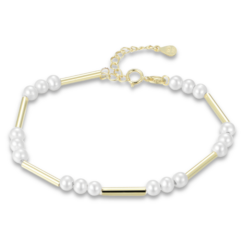 MINET Pozłacana srebrna bransoletka z naturalnymi perłami