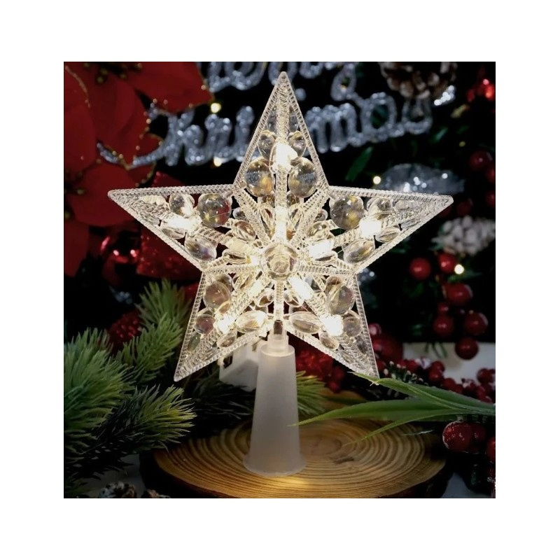 Czubek na choinkę GWIAZDA 15cm BOŻE NARODZENIE Wymiary: 15 x 20 cm Waga: g Materiał: Tworzywo Sztuczne