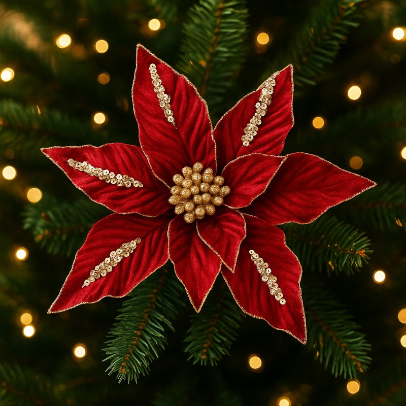 Kwiat na choinkę BOŻE NARODZENIE brokat Dodaj swojemu wnętrzu odrobinę zimowej magii.