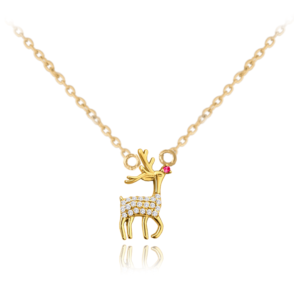 MINET Świąteczny pozłacany srebrny naszyjnik REINDEER