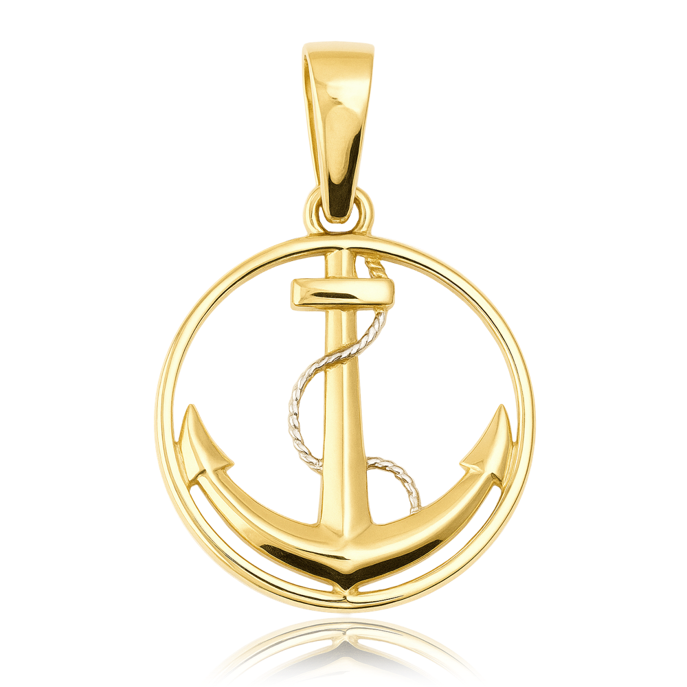 Złota zawieszka w kształcie kotwicy wykonana z prawdziwego 14-karatowego złota symbolizuje stabilność, nadzieję i siłę.