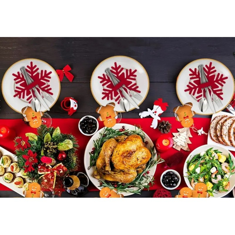 Efektowna podkładka na stół, do sztućców Zestaw 12 świątecznych podkładek w kształcie czerwonej śnieżynki Stylowe, filcowe podkładki w kształcie śnieżynki o