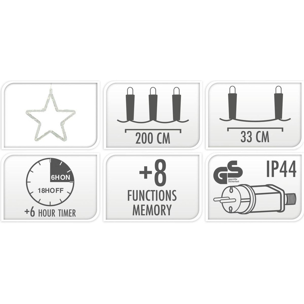 Dzięki 5-metrowemu przewodowi i zintegrowanemu timerowi 6/18, kurtyna świeci wtedy, kiedy chcesz – bez potrzeby codziennego włączania. Wystarczy raz ustawić, by cieszyć się światłem przez cały sezon.