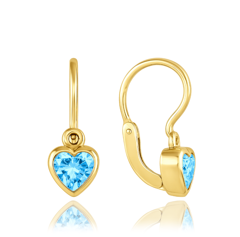 MINET Dziecięcy kolczyki z zapięciem z przodu serca z niebieskimi cyrkoniami Au 585/1000 1,25g